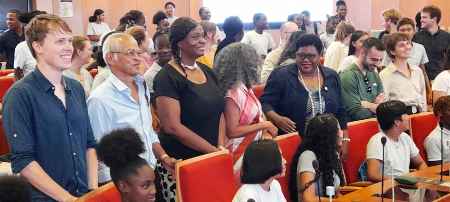 En ouverture de séance, la 2ème vice-présidente de la CTG a adressé quelques mots de bienvenue et de remerciements au nom du Président Gabriel Serville et s’est dite heureuse de recevoir les élèves car, dit-elle, « nous croyons à la vertu de la pédagogie et plus généralement de l’éducation ». « Vous venez des communes éloignées de la capitale. Elles font partie des plus belles communes et villages de Guyane pour ne citer que : Grand-Santi, Papaïchton, Kayodé, Atécum Pata, Twenké, Camopi, Trois-Sauts, Maripasoula et Puma (sic) ».