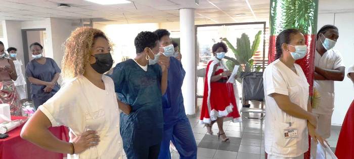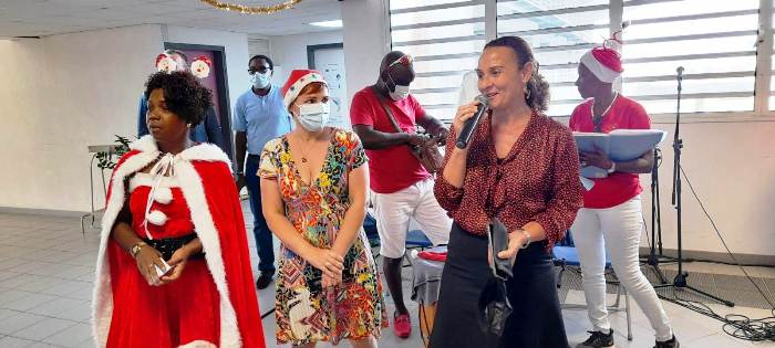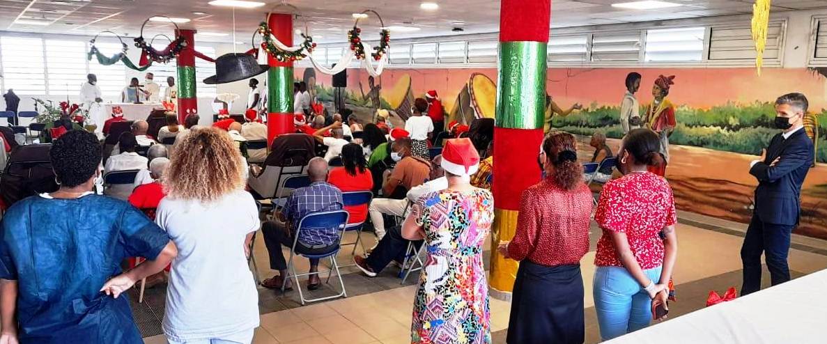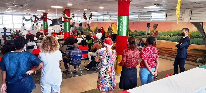 À quelques jours du Réveillon, les résidents de l’EHPAD (Etablissement Hospitalier pour Personnes Âgées et Dépendantes) du foyer Edmard Lama à Cayenne ont fêté Noël avec le soutien de la Collectivité Territoriale de Guyane (CTG), ce mercredi 21 décembre 2022, en présence de Christophe Robert, Directeur Général du CHC Andrée Rosemon (Centre Hospitalier de Cayenne) accompagné de Marie-France Roblot-Coulanges, Directrice de l’EHPAD Edmar Lama et de salariés de la résidence.