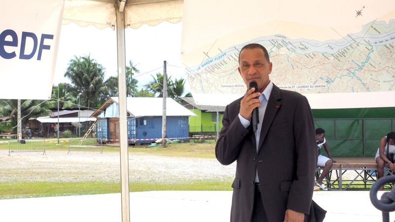 Le Président de la Collectivité Territoriale de Guyane, Rodolphe Alexandre, s’est rendu ce mardi 12 juillet 2016 à l’inauguration de la ligne électrique haute tension et de celle de la liaison fibre optique reliant Saint-Laurent du Maroni à Apatou, récemment achevées par les sociétés EDF et Orange.