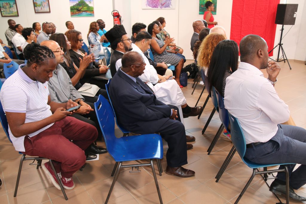 Parmi l’assistance, les 9ème et 14ème Vice-Présidents de la Collectivité Territoriale de Guyane, respectivement Rolande Chaco-Lefay, déléguée à la Culture, au Patrimoine et aux Identités et Mécène Fortuné, délégué à l’action sociale et solidaire ainsi que les Conseillers Territoriaux Hadj Boucheida et Elainne Jean.