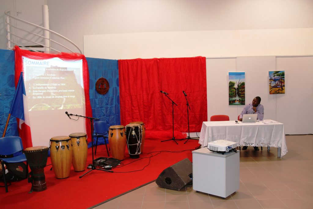 Suite à cette projection, Alain Coicou, étudiant en master 2 et agent consulaire a présenté le drapeau haïtien dans ses différentes phases de 1803 à 1986. Gary Paul, docteur en histoire, est également intervenu afin d’ajouter quelques précisions et répondre aux diverses interrogations de l’assemblée.