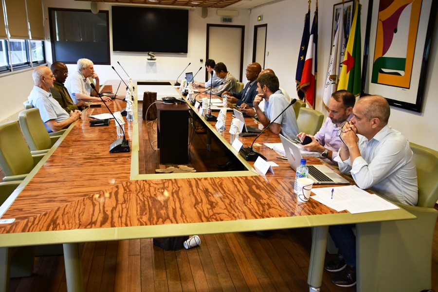 Ce mercredi 31 janvier 2024 se tenait une réunion de travail entre Gabriel Serville, Président de la Collectivité Territoriale de Guyane (CTG) et Alberic Benth, Président du SMEGUY (Syndicat Mixte d’Energie de la Guyane), en présence d’une délégation de la Fédération Nationale des Collectivités Concédantes et Régie (FNCCR) menée par Guy Hourcabie, vice-président et Patrick Villalon, Conseiller Technique pour les Territoires Ultra-marins et ZNI (Zone Non Interconnectée), s’est tenue.