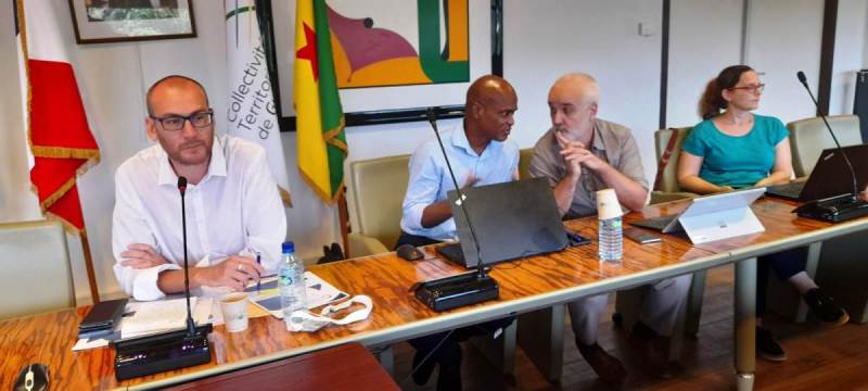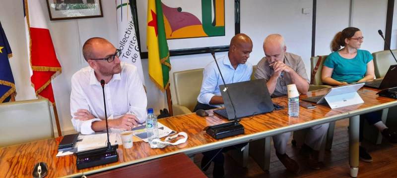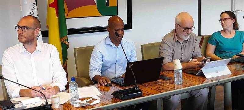 Dès l’ouverture de cette séance de travail, Philippe Bouba, 5ème Vice-président de la CTG, délégué à l’Enseignement Supérieur et à la Recherche a adressé quelques mots de bienvenue et un message de remerciements, au nom du Président de la Collectivité Territoriale, à tous ceux qui concourent et œuvrent au développement de l’Enseignement Supérieur, de la Recherche et de l’Innovation sur le territoire de la Guyane, à l’occasion de cette rencontre organisée avec de nombreux partenaires en présentiel, notamment, Laurent Linguet, président de l’Université de Guyane (UG), Stéphane Calmant, directeur de l’IRD en Guyane, le Docteur Lise Musset, directrice de recherche à l’Institut Pasteur de la Guyane, Christophe Chasseguet, directeur Général des Services de l’UG, et experts, en audioconférence, notamment Julien Calmand, consultant du Cabinet Strasbourg-Conseil.