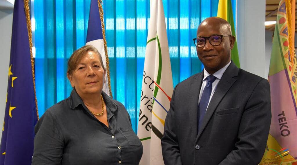 Gabriel Serville, président de la CTG, recevait Véronique Beuve, sous-préfète de Saint-Laurent du Maroni, suite à sa récente nomination, ce mardi 12 décembre 2023, à l’Hôtel Territorial.