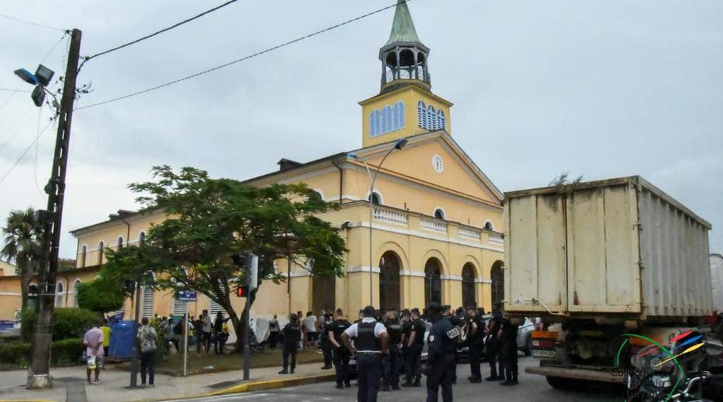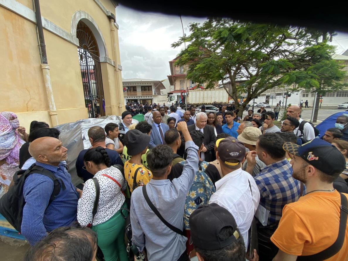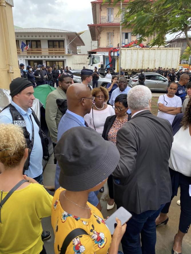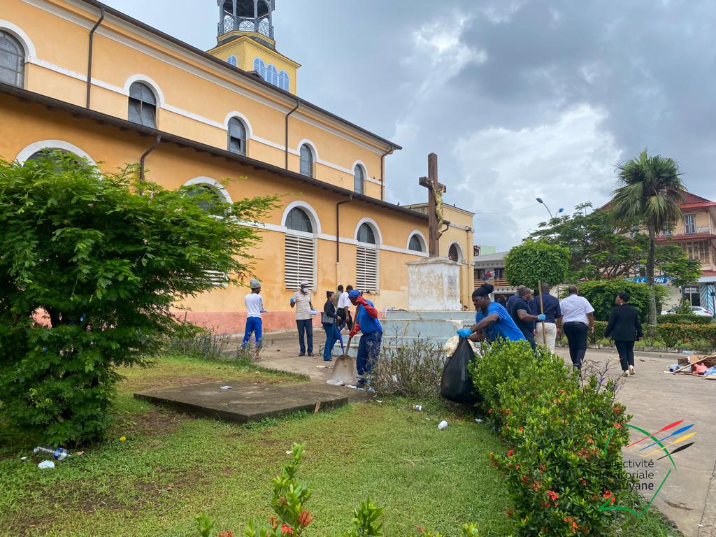 L’évacuation des abords de la cathédrale Saint-Sauveur de Cayenne s’est déroulée ce mercredi 14 décembre 2022, en présence de Gabriel Serville, président de la Collectivité Territoriale de Guyane, propriétaire de l’édifice et de Sandra Trochimara, maire de la ville de Cayenne.