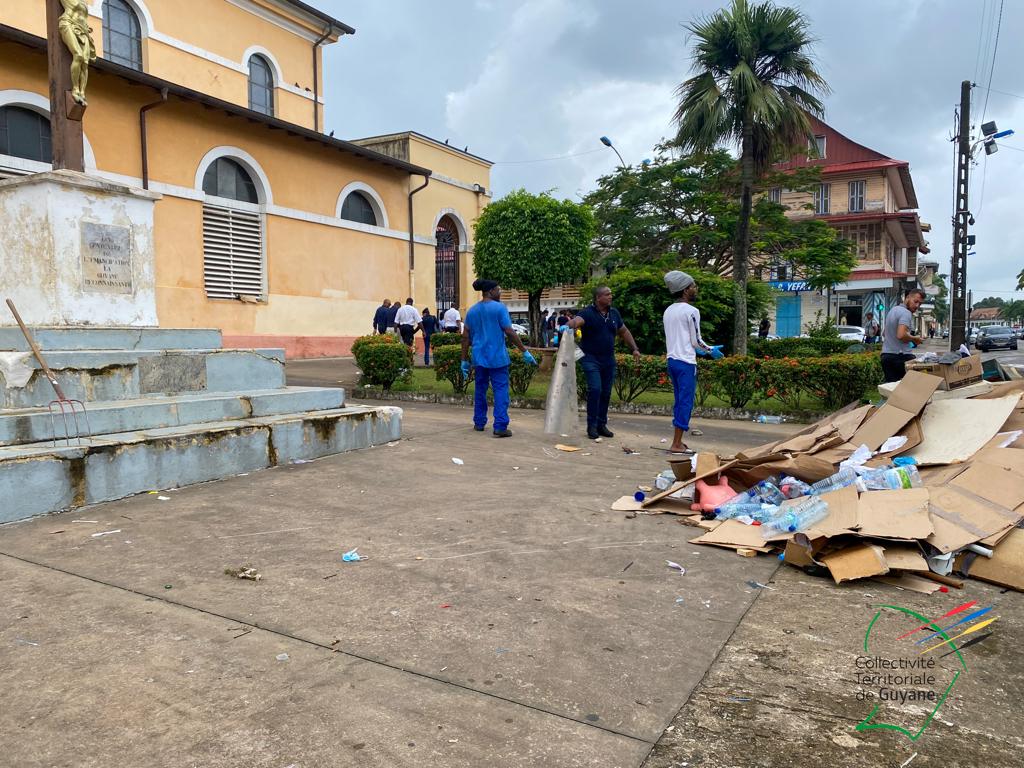 Suite à l’évacuation de ce campement, les opérations de déblaiement et de nettoyage par les services municipaux ont débuté au centre de la ville capitale, permettant ainsi aux Cayennais :