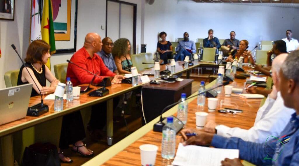 Une réunion avec les acteurs du monde économique guyanais était organisée ce jeudi 1er juin 2023, à l’Hôtel de la CTG, sous la présidence de Jean-Luk Le West, vice-président délégué au développement économique et au tourisme, en présence de Lucien Alexander, conseiller territorial délégué à la fiscalité et la performance budgétaire et d’Isabelle Vernet, conseillère territoriale et membre du comité de pilotage pour l’évolution statutaire.