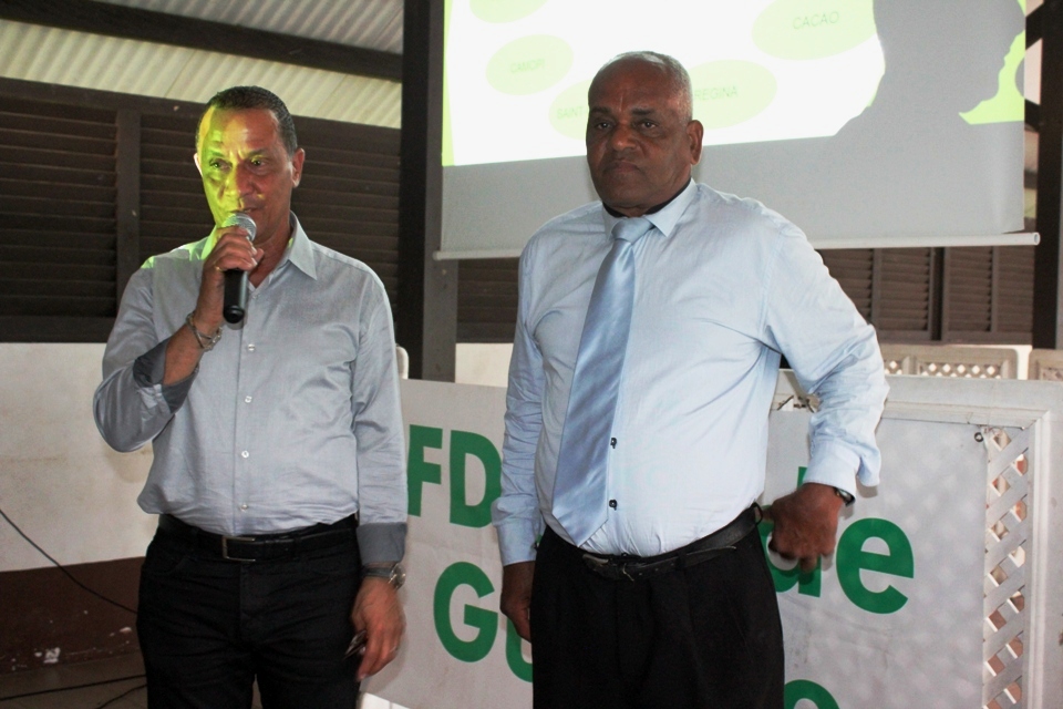 Au cours de cette réunion qui a mobilisé près d’une centaine de participants, les accords relatifs au renforcement et l’aménagement du secteur agricole étaient au centre des discussions, auxquelles ont participé la 1ère Vice-Présidente de la CTG, Hélène Sirder, déléguée au Développement Durable, au Mines et à l’Energie et les Conseillers Territoriaux Jocelyn Ho-Tin-Noé, Pierre Désert, Céline Régis. Le PV de la dernière Assemblée générale de 2016 ainsi que le rapport moral et financier de la fédération ont tous été approuvés. Dans le cadre des accords visant à renforcer et aménager le secteur agricole en Guyane au cours de l’année 2017, la FDSEA table sur la mise en œuvre du PDRG (Programme de Développement Rural de la Guyane) en collaboration avec la Chambre d’agriculture de la Guyane et la CTG et une meilleure prise en compte du foncier agricole avec la création de la SAFER (Société d’aménagement foncier et d’établissement rural).
