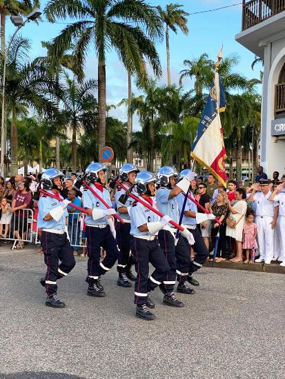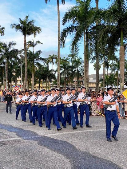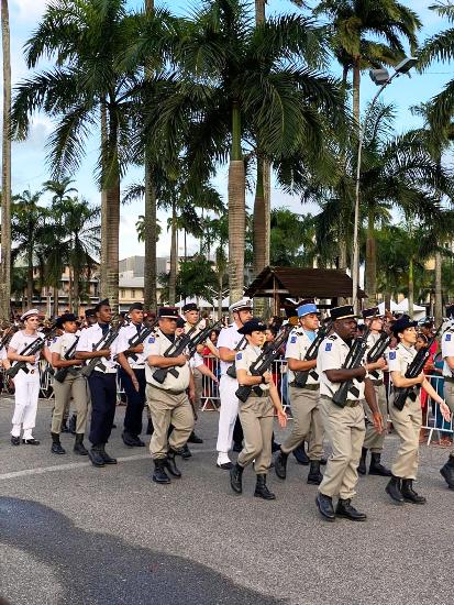 À l’occasion de la Fête Nationale du 14 juillet, Bernadette Duclona-Constant, vice-présidente de la Collectivité Territoriale de Guyane déléguée à la Citoyenneté et au Vivre-ensemble a participé au traditionnel défilé militaire du 14 Juillet à Cayenne aux cotés des autorités civiles et militaires.