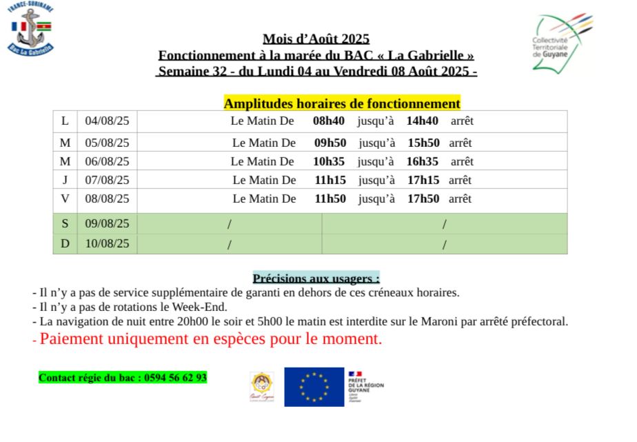 Fonctionnement du BAC “La Gabrielle”, du lundi 4 au vendredi 8 août 2025