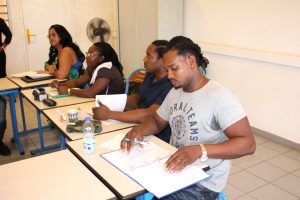 La Formation Française de Maîtrise d’Individus (FFMI) propose des formations aux métiers de la sécurité autour des modules essentiels à la parfaite réalisation des missions des agents dans l’exercice de leurs fonctions. Dans ce cadre, une session de formation dispensée par Patricia Prudent, responsable de formation à la FFMI se déroule du 2 octobre 2017 au 17 janvier 2018 dans une salle de formation mise à disposition par la Collectivité Territoriale de Guyane (CTG) au siège de l’Opérateur Public Régional de Formation (OPRF) à Matoury.