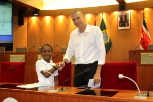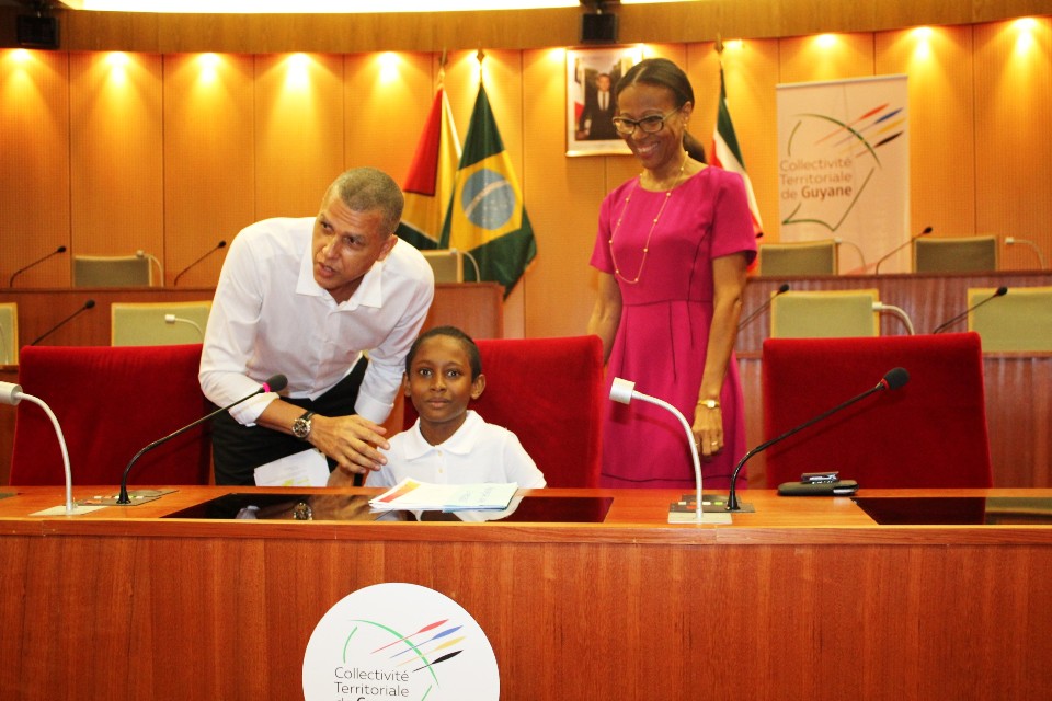 Dans le cadre de ce dispositif, une session de formation des « Ambassadeurs élèves » contre le harcèlement » portée par Lisa Robert responsable adjointe de l’EMS (Equipe Mobile de Sécurité) à l’Académie de la Guyane se tient ce jeudi 12 octobre 2017 dans la salle des délibérations de l’Hôtel Territorial, avec le concours de la Collectivité qui outre les locaux, a organisé le transports des élèves vers le site de formation. L’ouverture officielle a été donnée par le 12ème vice-président de la Collectivité Territoriale de Guyane, Claude Plénet en charge de l’Education, l’Apprentissage et la Formation professionnelle.