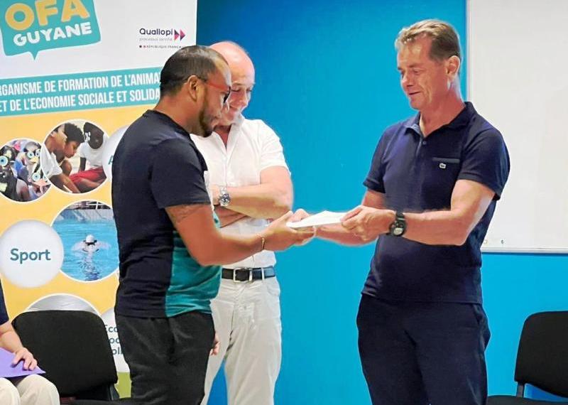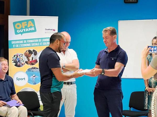 Cette cérémonie s’est déroulée en présence de Gilles Le Gal, Conseiller Territorial délégué au Sport et aux Loisirs, Cyril Goyer, Directeur adjoint chargé de la culture, de la jeunesse et du sport, Nicolas Calmettes, Chef du Pôle certifications de la DGCOPOP (Direction Générale de la Cohésion et des Populations) en Guyane.