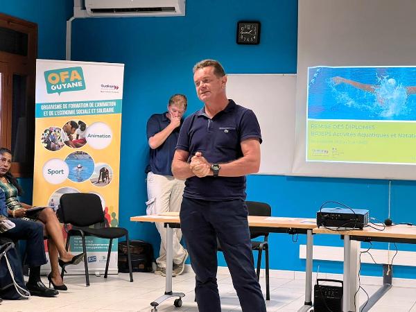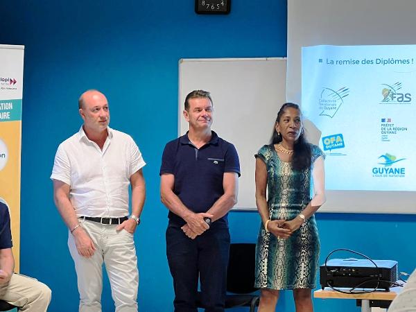 Une remise de diplômes aux lauréats du BPJEPS -AAN (Brevet Professionnel de la Jeunesse, de l’Éducation Populaire et du Sport), spécialisation Activités Aquatiques et Natation) était organisée par la Collectivité Territoriale de Guyane (CTG) via l’IFAS (Institut de Formation et d’Accès aux Sports Michel Néron), en partenariat avec l’association OFA Guyane (Organisme de Formation Associatif), la Ligue de Natation de Guyane et l’ERFAN (École Régionale de Formation aux Activités de la Natation, le lundi 12 décembre 2022, au Pôle Médico Sportif -Docteur José Dorcy.