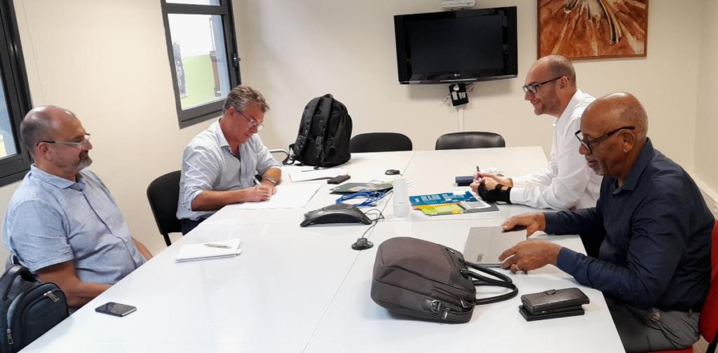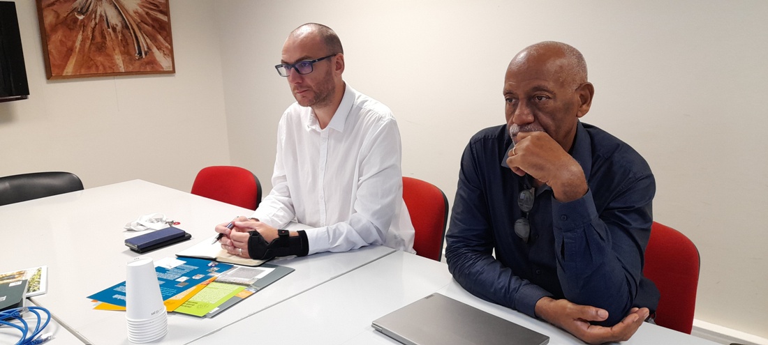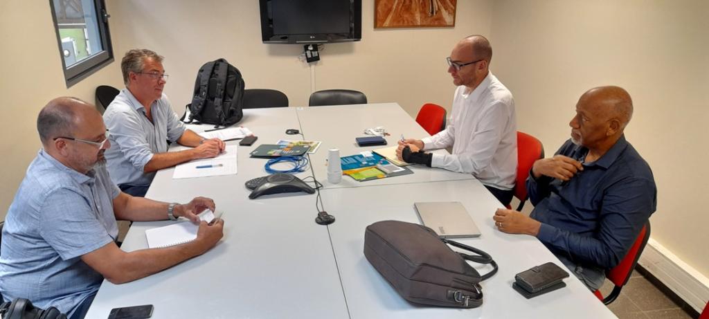 Philippe Bouba, 5ème vice-président délégué à l’Enseignement Supérieur et la Recherche s’est entretenu avec Jean-Marc Mompelat, directeur des Actions Territoriales du Bureau de Recherches Géologiques et Minières (BRGM) délégué à l’Outre-mer (DEAL) ce mardi 27 septembre 2022, à l’Hôtel Territorial à Cayenne. Il était accompagné de Frédéric Tronel, directeur Régional du BRGM.