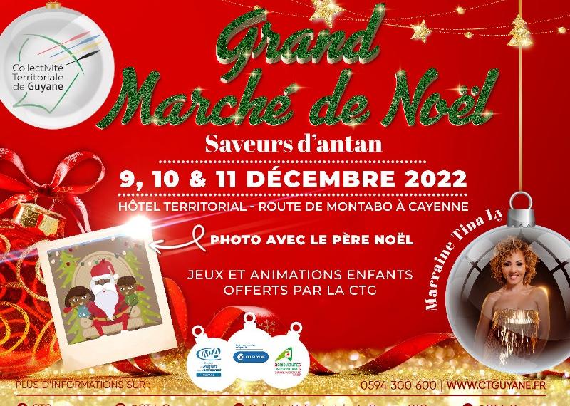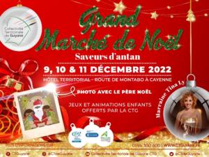 La Collectivité Territoriale de Guyane, organise la première édition de son Grand Marché de Noël, les vendredi 9, samedi 10 et dimanche 11 décembre 2022, sur le parking de l’Hôtel Territorial, en partenariat avec la CMA, la Chambre d’Agriculture et la CCI. Un évènement qui se veut féérique, mémorable et populaire, sous la thématique de Noël « Saveurs d’antan, traditions locales ».
