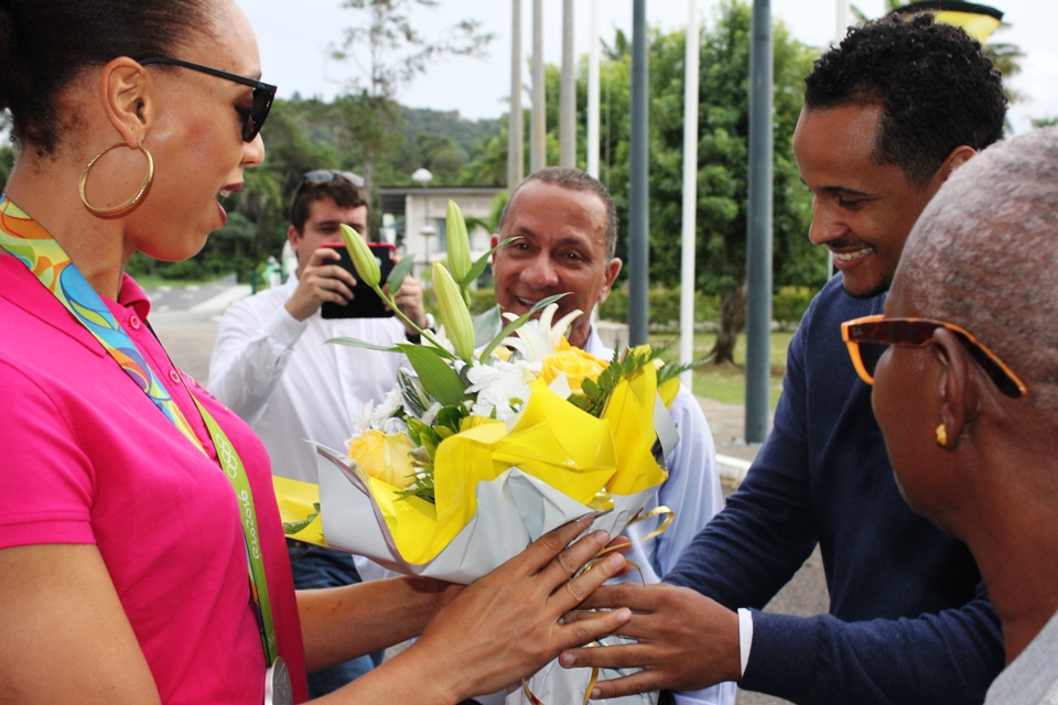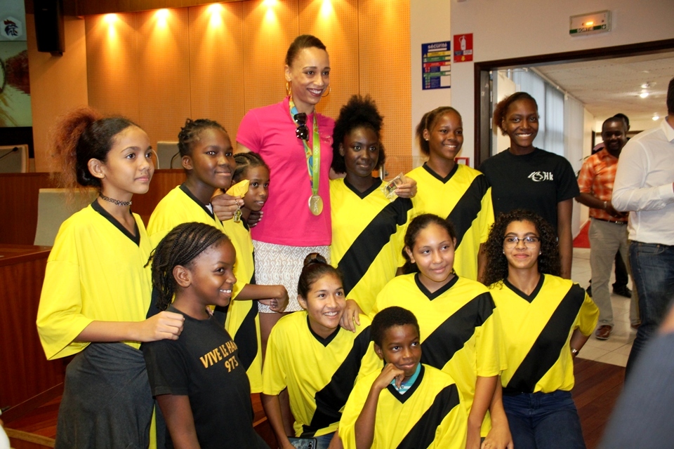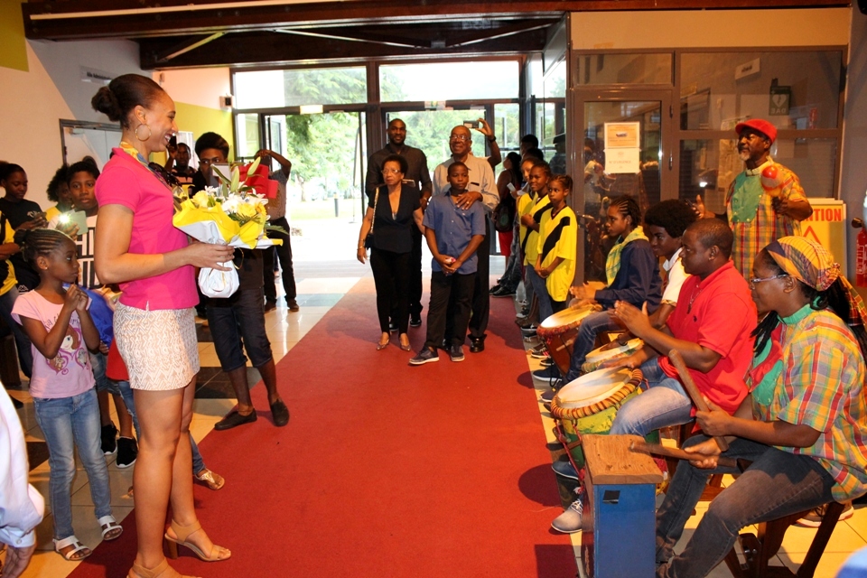La handballeuse professionnelle, Béatrice Edwige, vice-championne olympique désignée meilleur défenseure de l’Euro 2016 est arrivée ce mardi 20 décembre à l’Aéroport International Félix Eboué. Quelques heures après sa descente d’avion, elle a été accueillie en championne à l’hôtel territorial par le Président, Rodolphe Alexandre en présence du Sénateur-Maire, Georges Patient , du président du CROSGUY, Jean-Claude Mariema, du Président de la Ligue de handball de Guyane, Gilles Essers, de conseillers territoriaux, du monde sportif et de nombreux supporters.