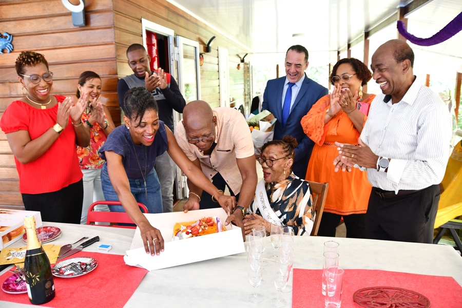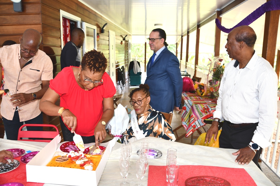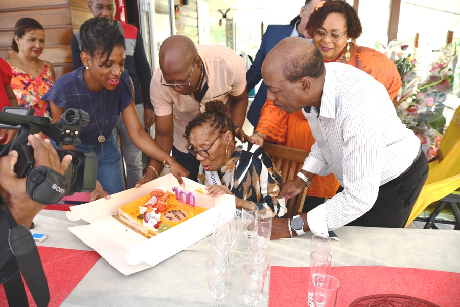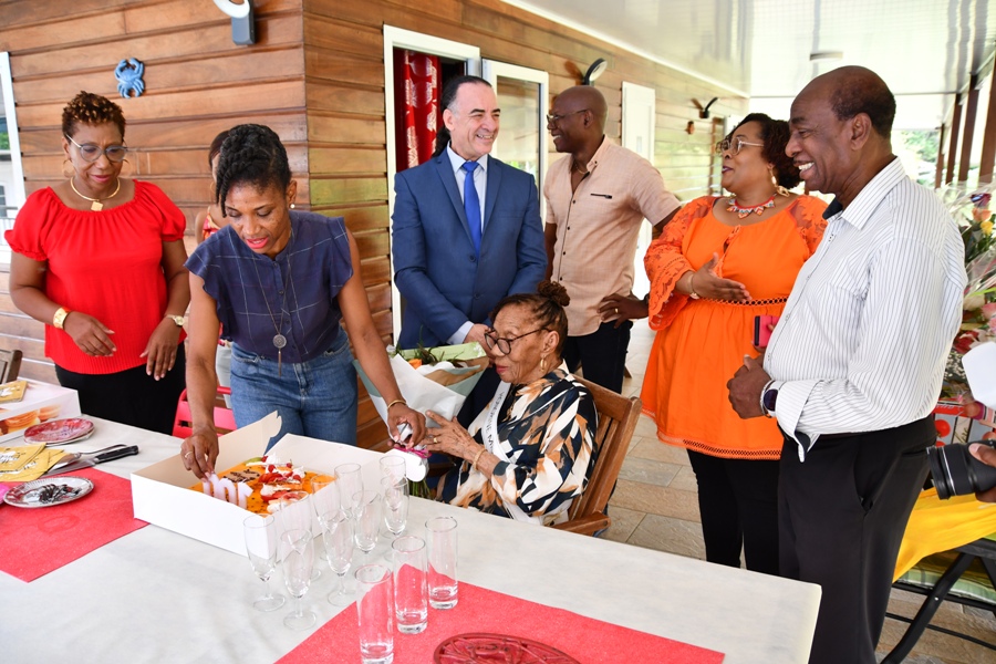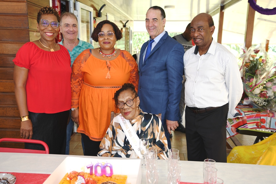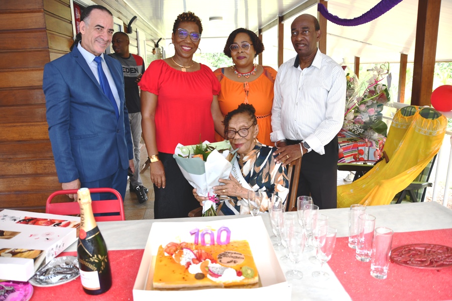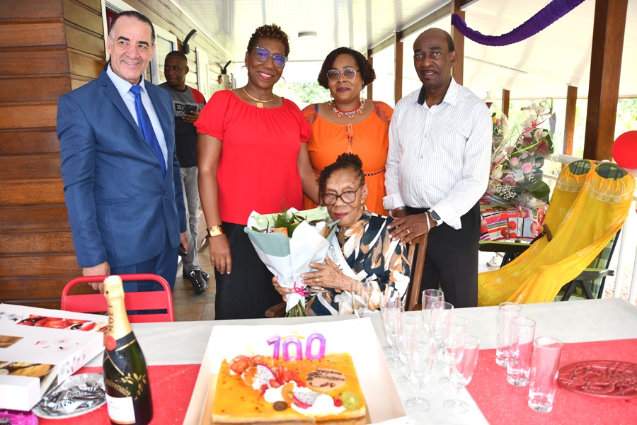Ce temps dédié à célébrer la centenaire s’est tenu en présence de ses petits enfants, son accueillante familiale, Samantha Cyriaque, vice-présidente de la CTG, déléguée à l’autonomie et Handicap de Yahya Daoudy, Mécène Fortuné, Didier Silighini, élus de la Ville de Matoury ce vendredi 16 mai 2024.