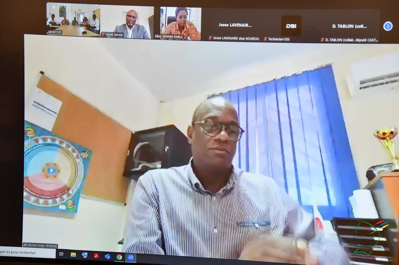 Dans la continuité des actions engagées, une visioconférence avec les représentants des parlementaires de Guyane et Michel Ange Jérémie, président de l’association des maires était organisée dans la matinée, en faveur d’une réflexion commune sur les actions à mettre en œuvre pour lutter contre le climat délétère qui règne sur l’ensemble du territoire.
