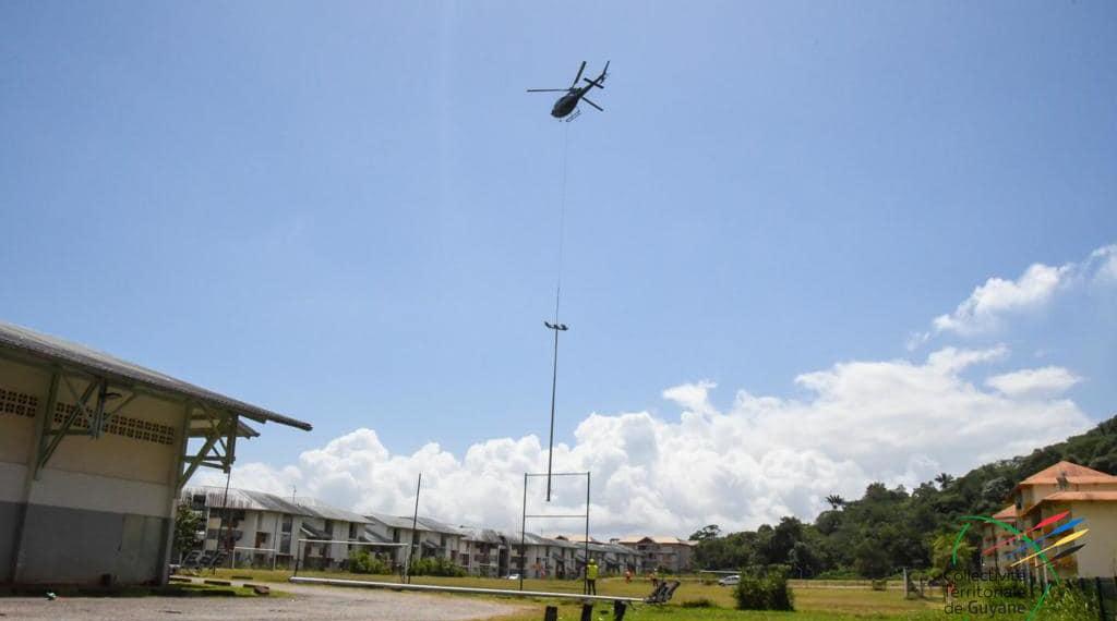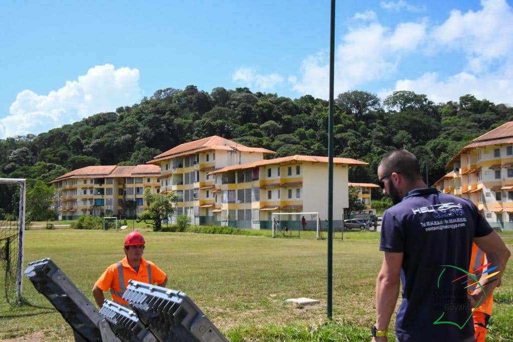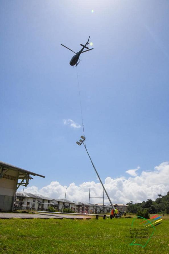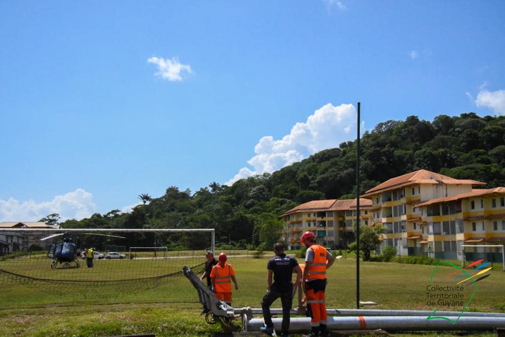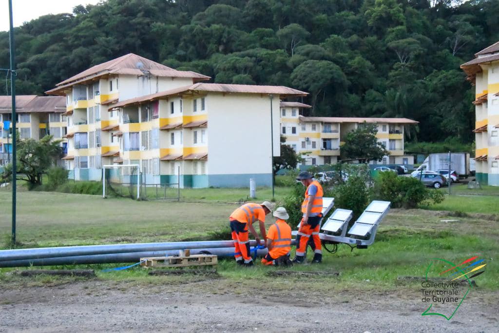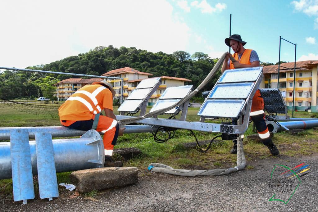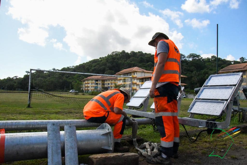 Ce jeudi 18 août 2022, le terrain de football du complexe sportif « Michel Kapel », géré par la CTG et situé à Mont-Lucas et celui du collège Paul Kapel accueillaient la mise en place de plusieurs lampadaires éco responsables.