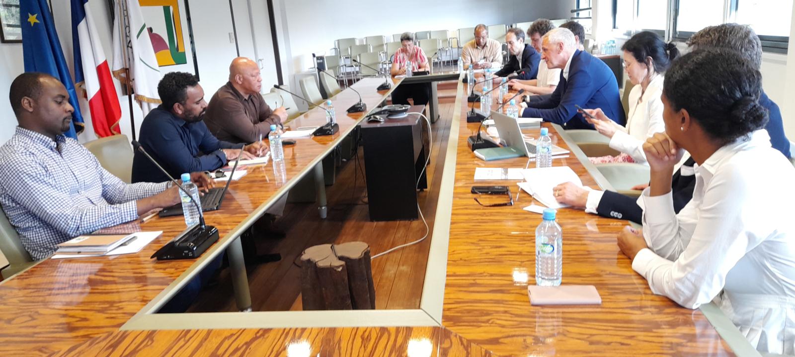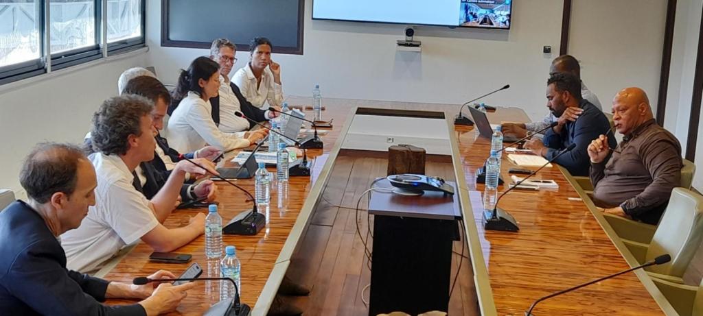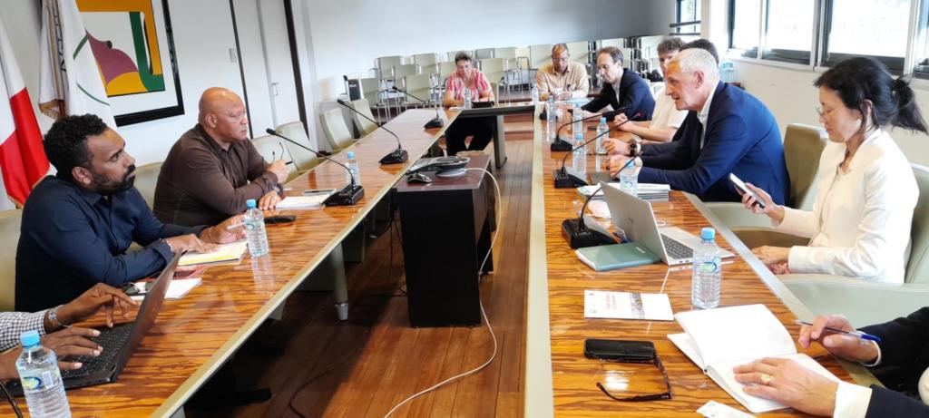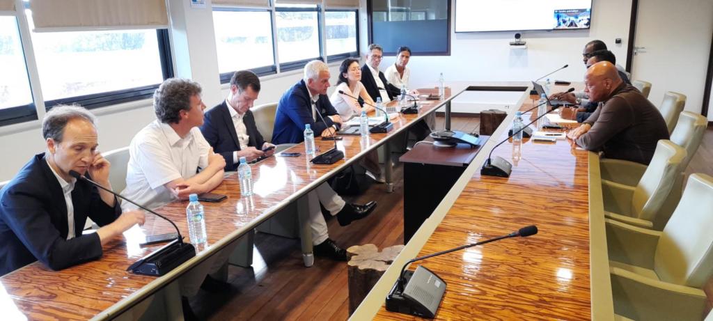 Jeudi 23 juin 2022, une délégation de la Banque Européenne d’Investissement (BEI) et du Fonds Européen d’Investissement conduite par le vice-président de la BEI, Kris Petters, accompagné notamment de François Alter, conseiller auprès du PDG du CNES et directeur de la stratégie de l’agence spatiale, a été reçue par Jean-Luc Le West, cice-président de la Collectivité Territoriale de Guyane (CTG) délégué au Développement économique et au Tourisme à l’Hôtel Territorial à Cayenne.