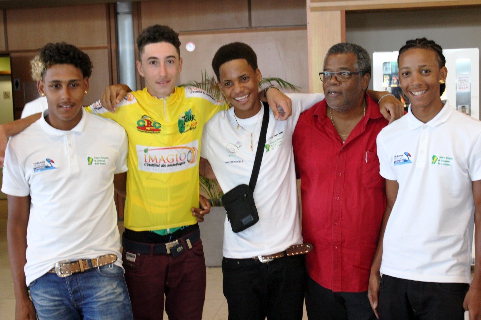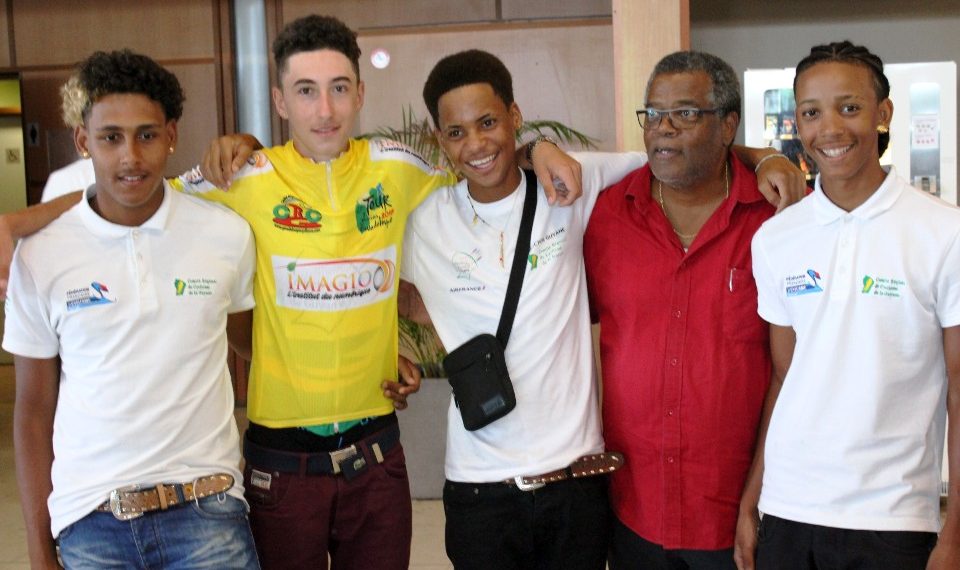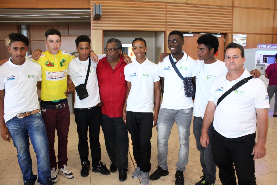 Ce lundi 17 juillet 2017, les coureurs cyclistes guyanais Dylhan Will et Teddy Ringuet qui ont représenté la Guyane de fort belle manière lors du Tour Cycliste 2017 de la Guadeloupe junior et du Tour Cycliste International 2017 de Martinique Sénior ont été accueillis avec ferveur à l’Aéroport International Félix Eboué par le 4ème Vice-Président de la Collectivité Territoriale de Guyane, délégué au Sport et au Cadre de Vie, Jean-Claude Labrador et quelques représentants du monde du cyclisme en particulier, Philippe Kong, Président du Vélo Club Guyanais et Richard Racon, Président et directeur technique de l’USL Montjoly.