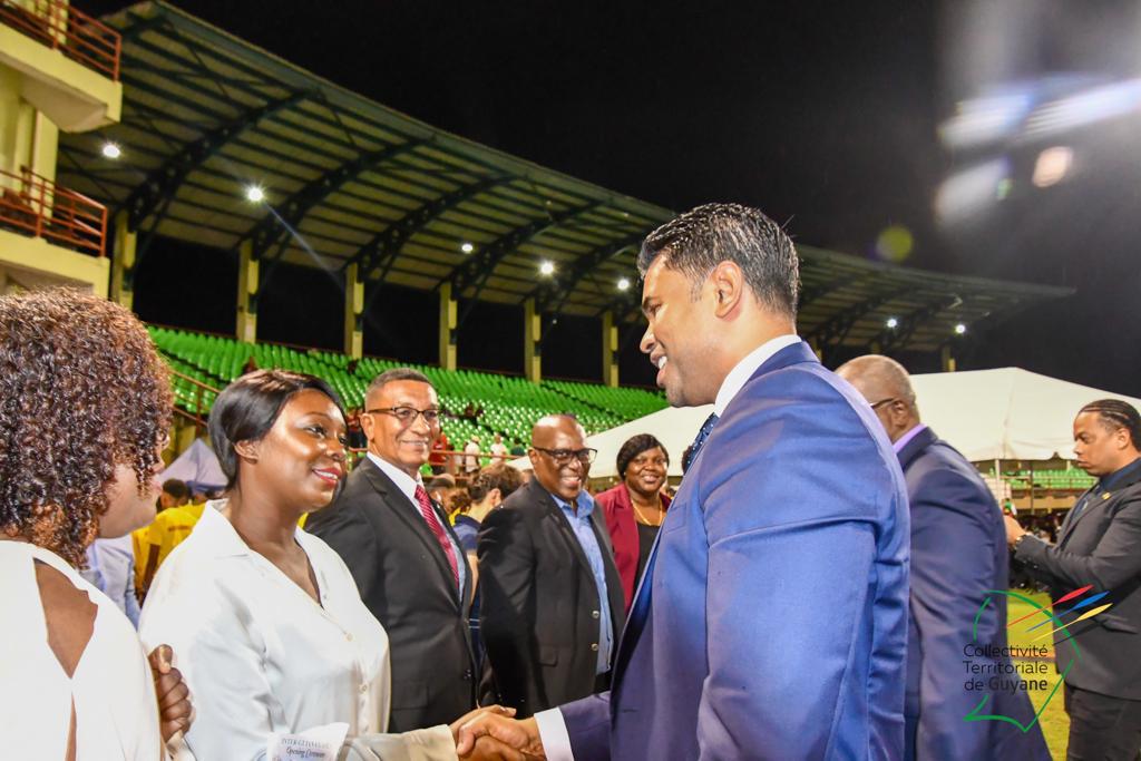 Je nous souhaite un plein succès, pour cette reprise des jeux, nourrit par des échanges fructueux et amicaux entre nos jeunes talents sportifs et je ne peux m’empêcher de conclure sur la symbolique de cette phrase inscrite au sein de ce national stadium « One Guyana !» pour nos trois pays liés vers un avenir commun. » s’est exprimée Mirta Tani, conseillère territoriale déléguée à la coopération transfrontalière avec le Suriname