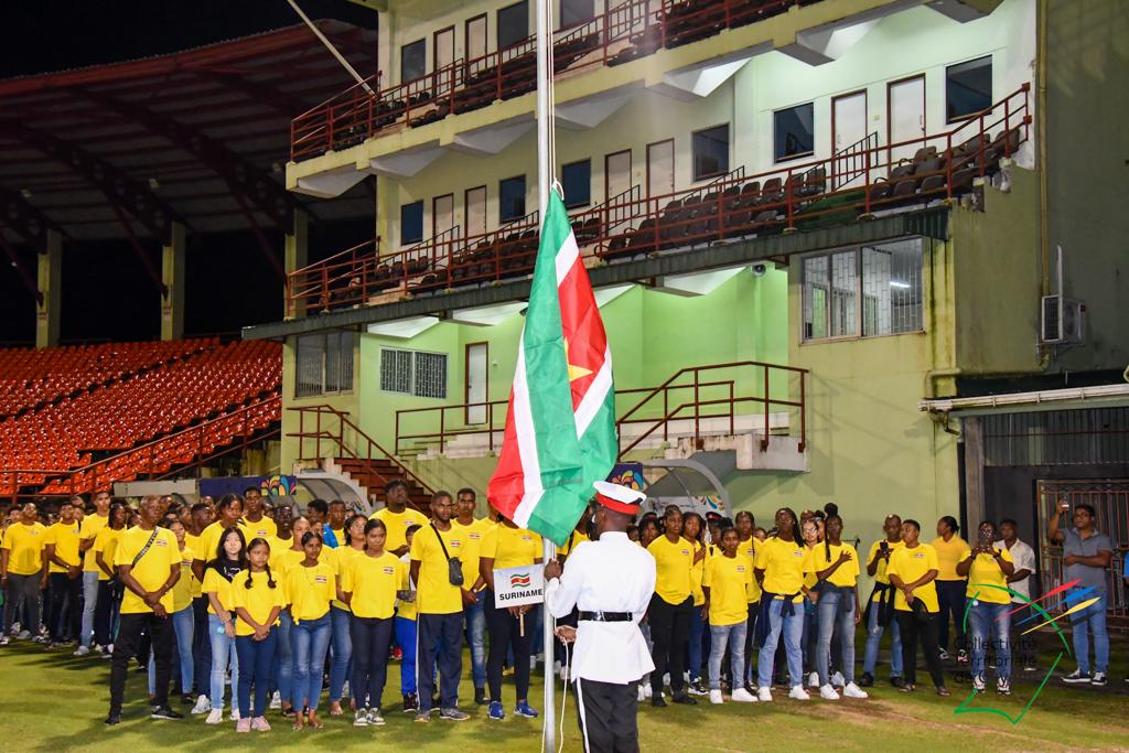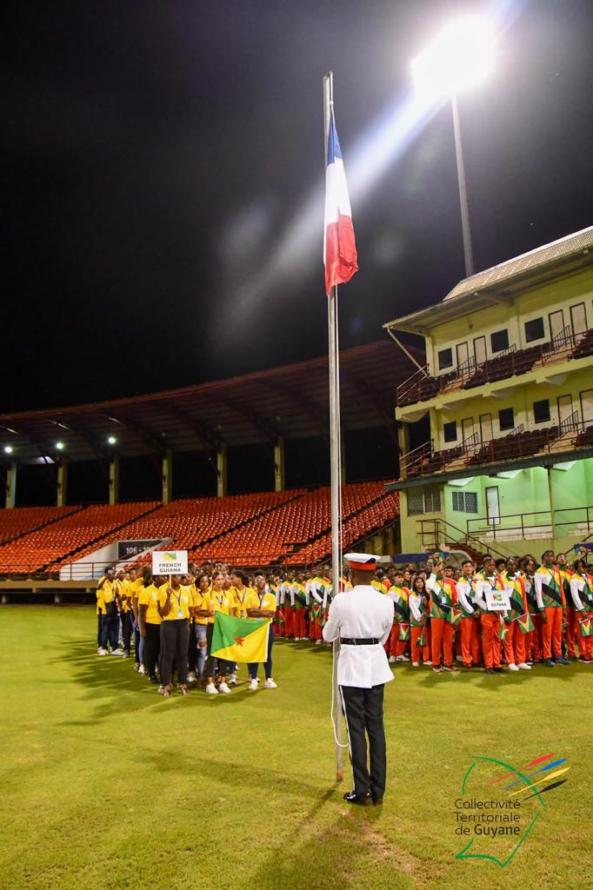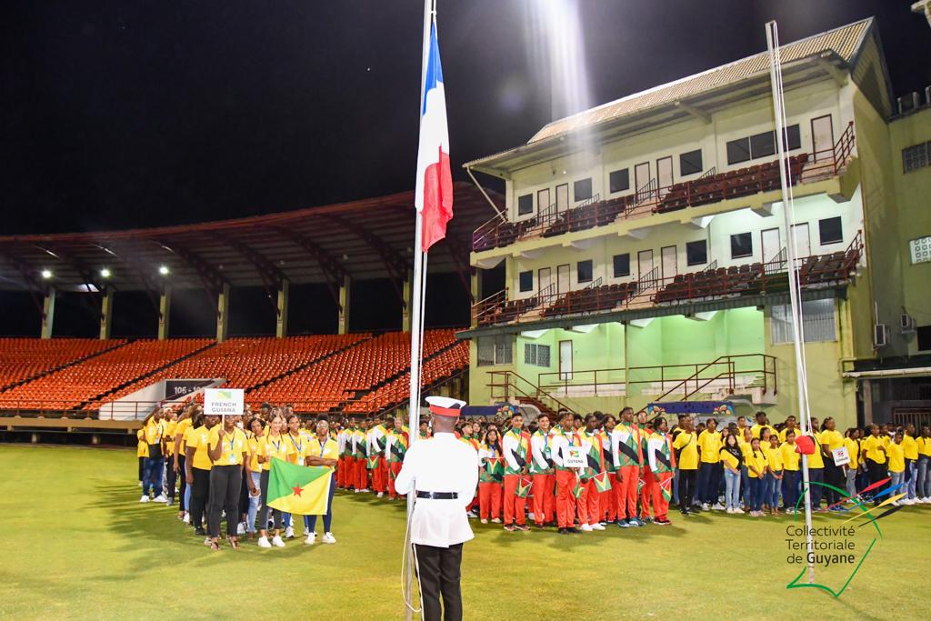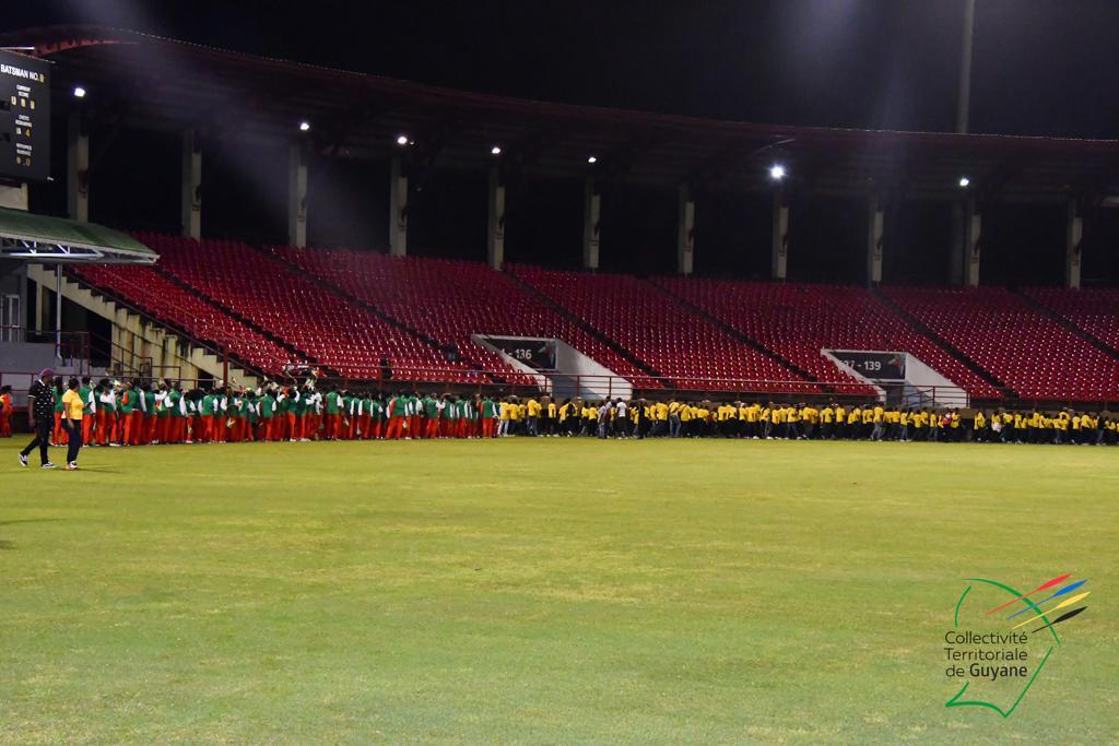 Les équipes de Guyane, du Guyana et du Suriname réunies au titre de cette compétition ont défilé dans le stade, avant que ne soient hissés les drapeaux et que chacun des hymnes ne retentissent.
