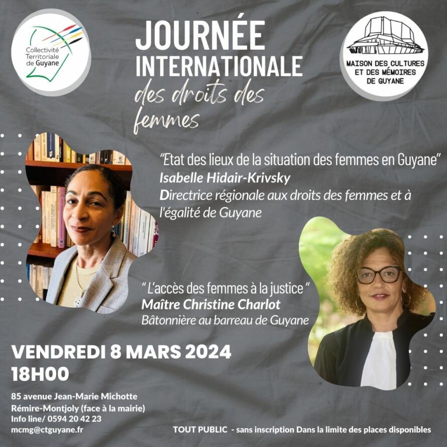 [Journée Internationale des Droits des Femmes] Une double conférence autour de la situation des femmes en Guyane et leur accès à la justice, proposée à la MCMG