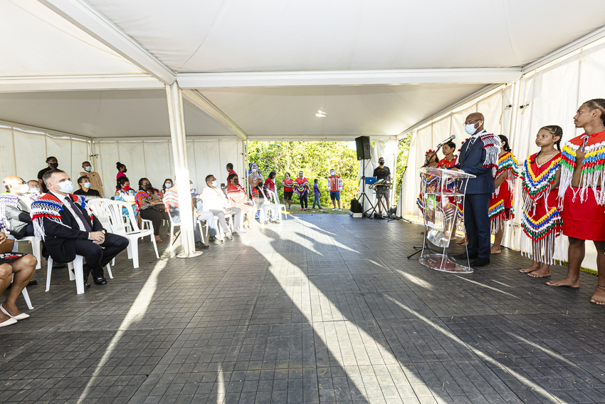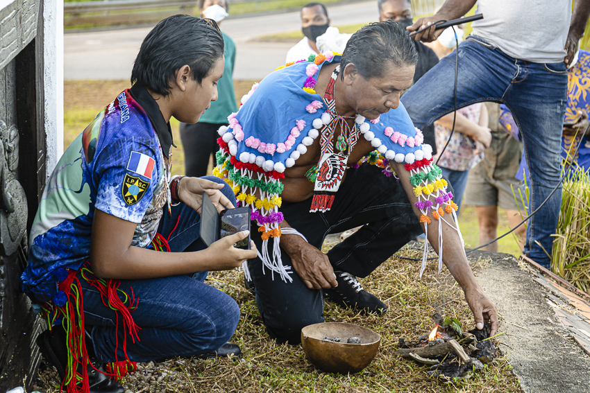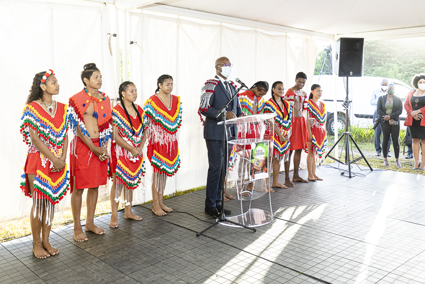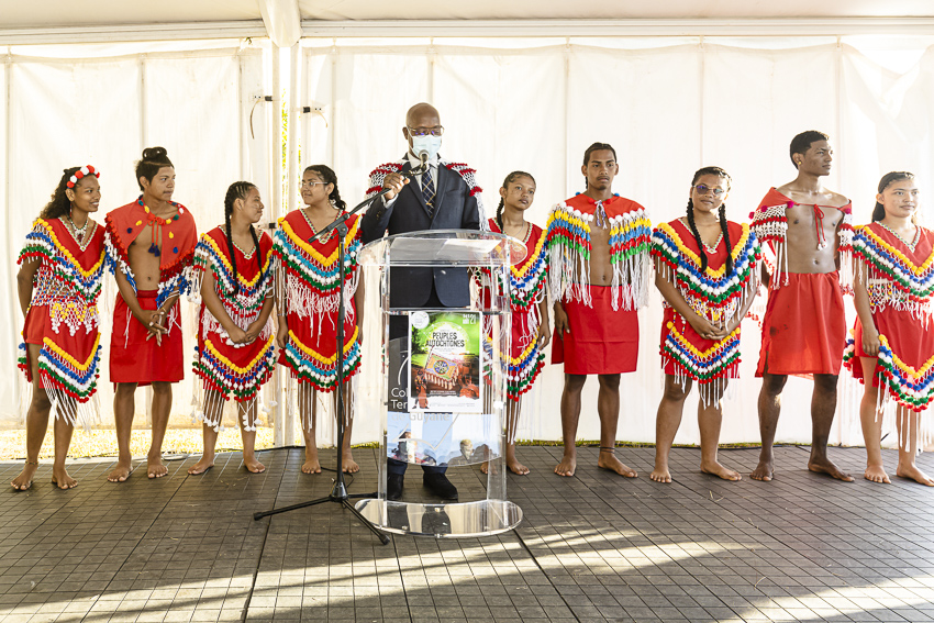 Nouvellement élu, Gabriel Serville, président de la Collectivité Territoriale de Guyane, a assisté à l’ouverture de cette 11è édition, dans un format réduit pour cause de crise sanitaire, qui a débuté par le traditionnel rituel chamanique, aux côtés de plusieurs vice-présidents et conseillers territoriaux dont Emmanuel Prince, 11è vice-président délégué à la Culture au Patrimoine et à la Transmission et Christian Noko, conseiller délégué aux arts vivants, Philippe Bouba, Jocelyn Therese, Serge Long-hin-nam, Sherly Alcin, Violaine Machichi-Prost et Bernadette Duclona-Constant.
