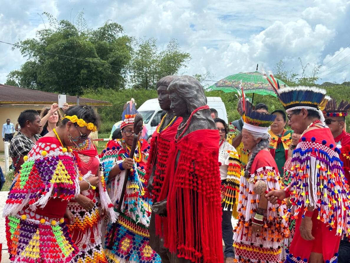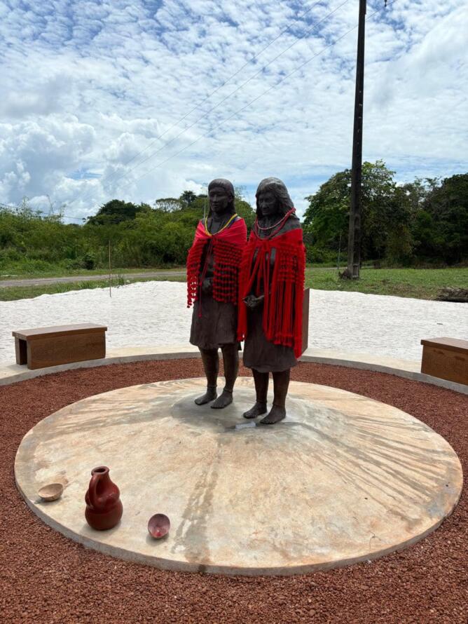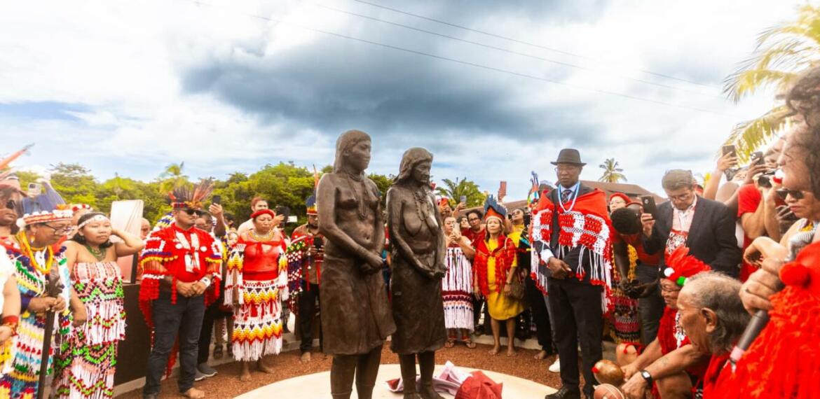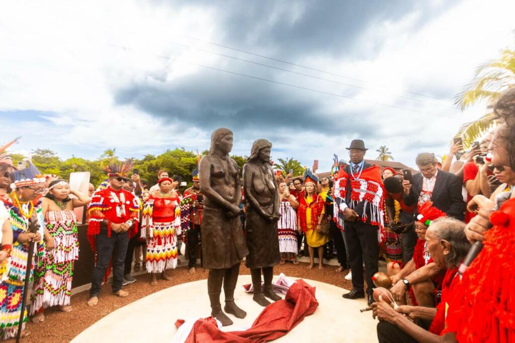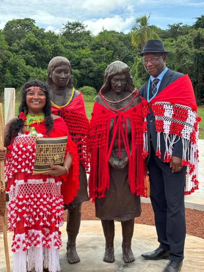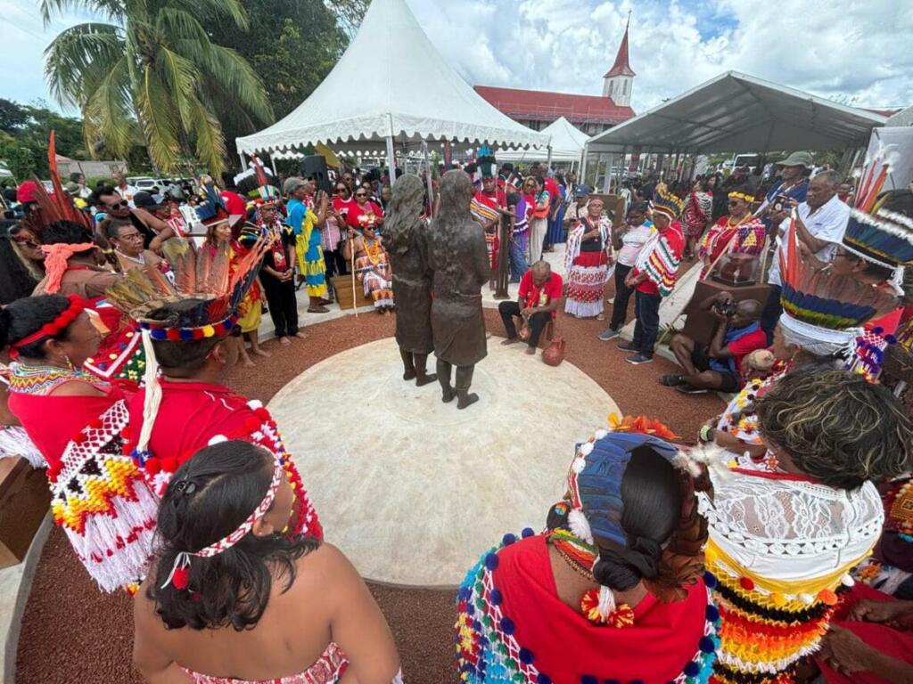 Ce dimanche 11 août 2024, dans la commune d’Iracoubo, deux statues étaient inaugurées, en hommage « à pi’pi Ahieramo, pi’pi Molko et aux 47 Kali’na et Arawak, exhibés en 1882, 1892, au Jardin zoologique d’acclimatation à Paris », en présence de membres des familles exposées, de yopotos, de Gabriel Serville, président de la CTG, de Céline Régis, maire de la commune, d’officiels.