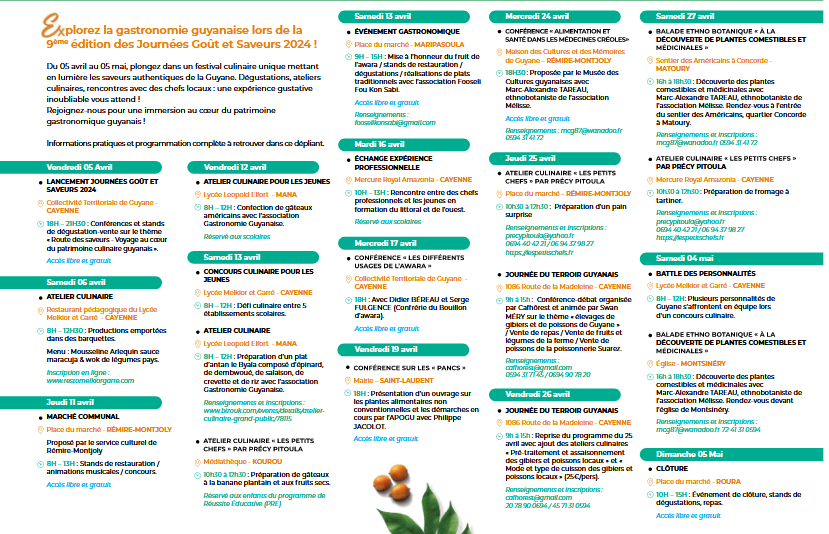 Journées Goût et Saveurs de Guyane, découvrez les rendez-vous de la semaine :