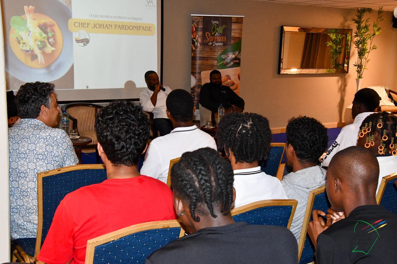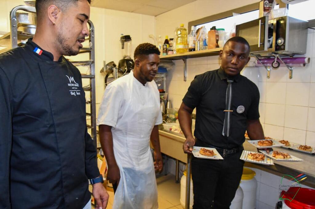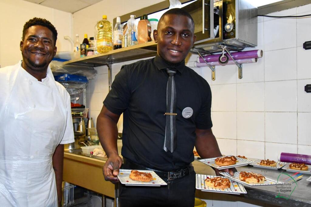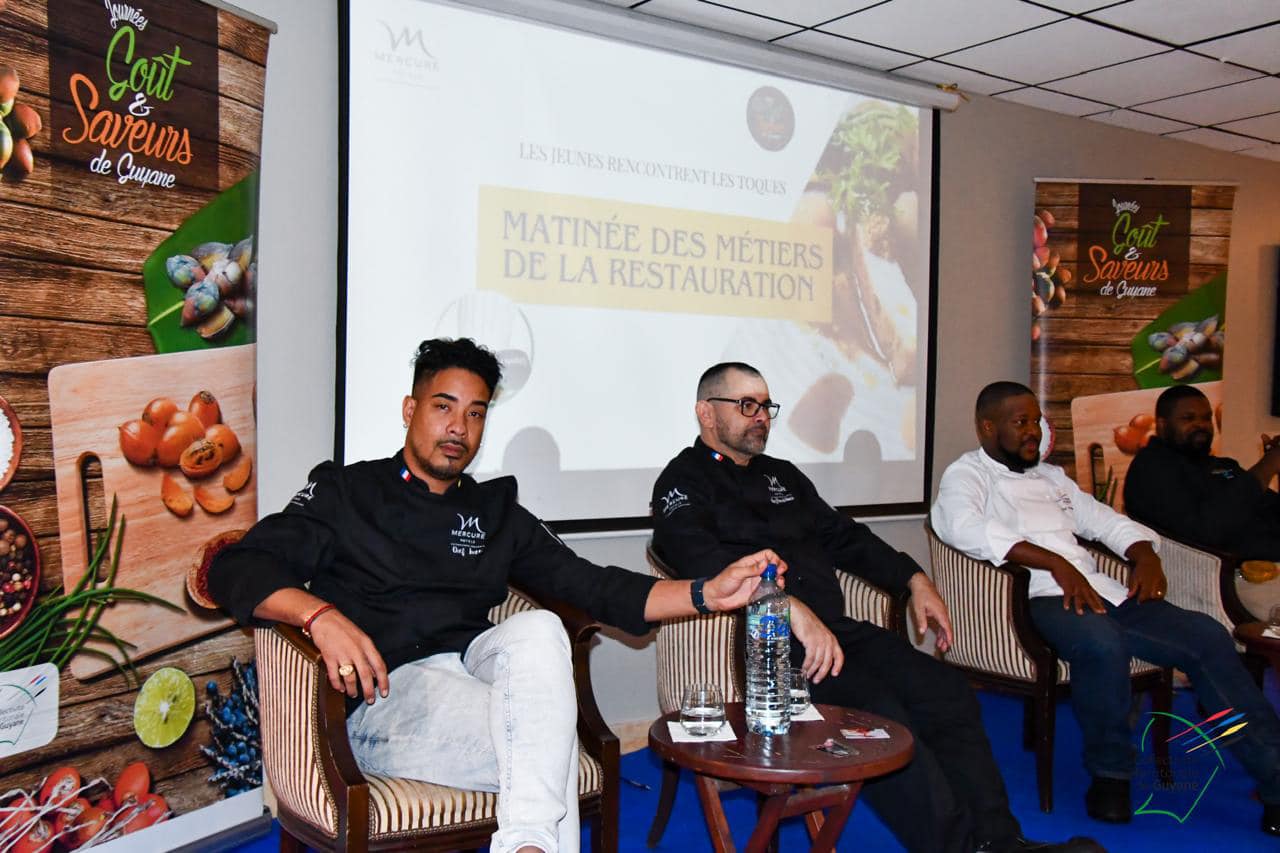 Une vingtaine d’élèves de la filière restauration du lycée Léopold Elfort de Mana est allée à la rencontre des chefs guyanais : Theivan Luce, Johan Pardonipade et Doris Mirta, dans le cadre des journées goût et saveurs de Guyane, ce jeudi 18 avril 2024.