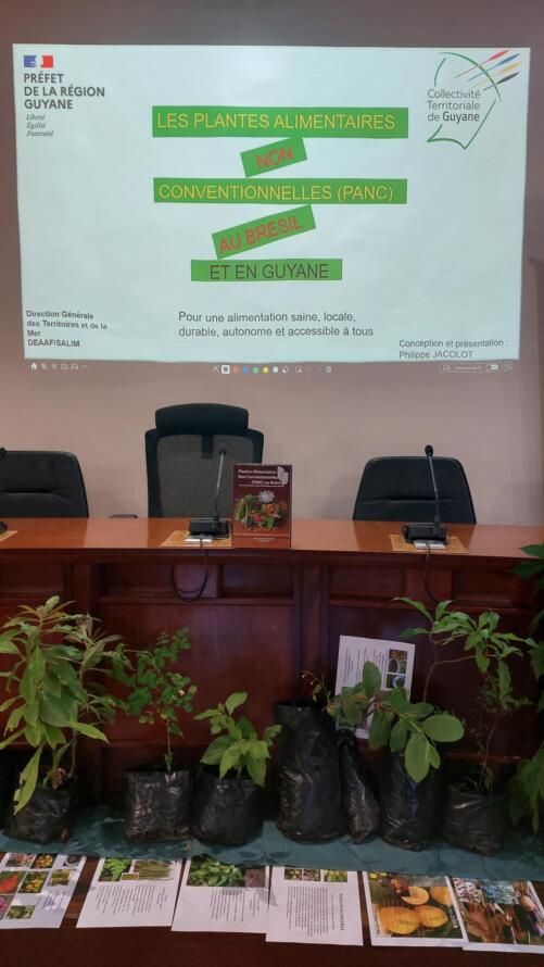 • Une présentation de l’ouvrage et de l’intérêt de développer une filière autour des Plantes Alimentaires Non Conventionnelles, par Philippe Jacolot, agent de la DEEAF : démarche menée depuis trois ans par l’association des producteurs de l’Ouest Guyanais (APOGU) en vue de valoriser les PANC et structurer une filière dans l’Ouest.