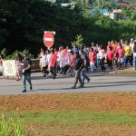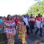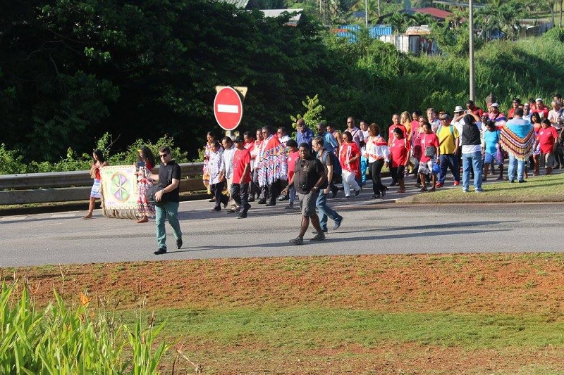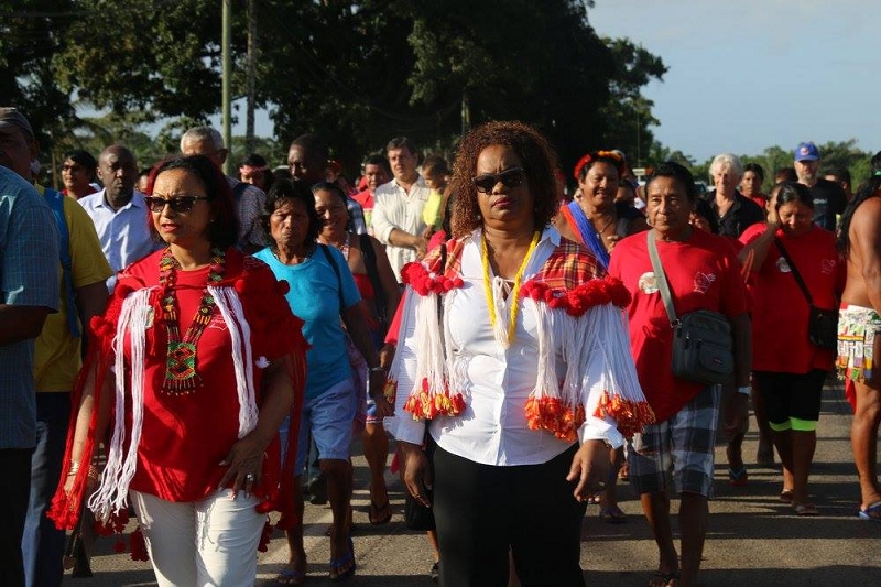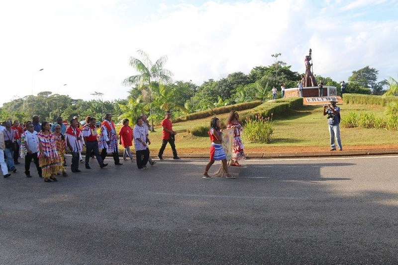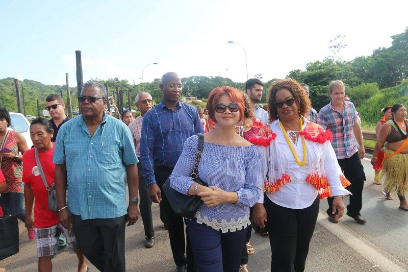 La cérémonie a débuté par une marche partant du village Sainte-Rose de Lima en direction du monument érigé quelques centaines de mètres plus loin, marche à laquelle participaient notamment le Président de la Collectivité Territoriale de Guyane, Rodolphe Alexandre, ses 1er, 4ème, 9ème et 15ème Vice-Présidents, respectivement, Hélène Sirder, Jean-Claude Labrador, Rolande Chalco-Lefay, et Sau Wah Ling, le Député de la 1ère circonscription, Gabriel Serville, et le Maire d’Iracoubo, Cornélie Sellali Bois-Blanc.