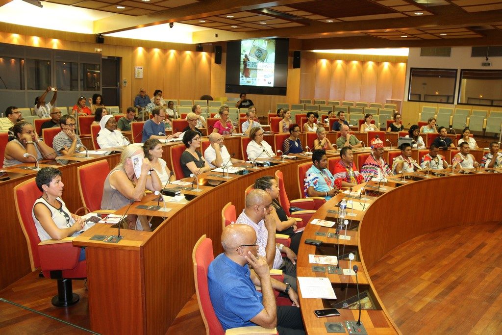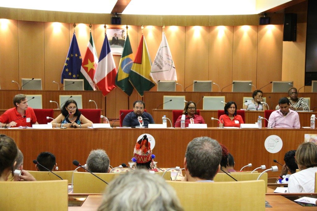Les deux premières conférences sur l’histoire ancienne et moderne des peuples amérindiens de Guyane se sont tenues le mardi 02 août à l’hôtel de la Collectivité devant une assistance nombreuse et studieuse. Introduites par Hervé Robineau, Conseiller territorial en charge de la « Relation avec les peuple Amérindien et Bushinengue » et en présence des Conseillers, Rolande Chalco-Lefay et Alex Madeleine, ces conférences qui ont précédé une animation musicale interprétée par le groupe Sanpula « Ischamchapa », ont bénéficié de la participation de représentants d’autorités coutumières et d’associations qui œuvrent pour la sauvegarde des identités.
