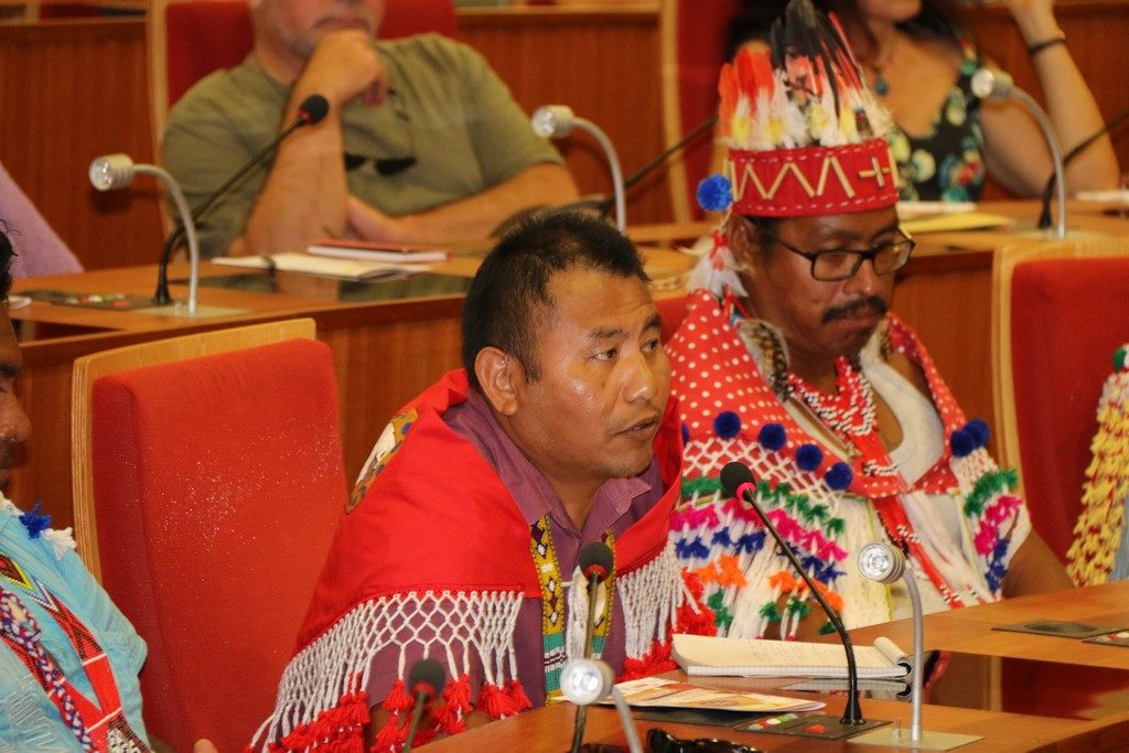 Anne-Marie Chambrier, chargée de mission Langue et Autochtonie, a planté le décor en délivrant des chiffres parlant sur la cartographie des peuples autochtones vivant dans le monde. Il faut savoir que les peuples autochtones représentent 4,5% de la population mondiale et 10% du nombre d’individus pauvres dans le monde, et qui préservent 80% de la biodiversité mondiale. Dans sa communication intitulée « Genèse de la Journée Internationale et Régionale de la Journée Autochtone », l’auteur dans son argumentation de niveau universitaire explique dans quelle mesure, la journée internationale qui a été actée au 09 août par l’ONU, sera reprise par les autorités régionales de l’époque qui ont choisi délibérément de s’aligner sur cette date en concertation avec les autorités coutumières et les acteurs du monde associatif.