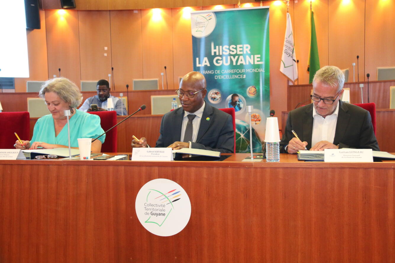 Cette convention couvrant une période de trois ans, renouvelable une fois, a été signée par Gaëtan Longeau, Directeur exécutif de La Poste de Guyane et Gabriel Serville, Président de la Collectivité Territoriale de Guyane en présence de Catherine GARNIER-AMOUROUX, Directrice déléguée du Réseau de La Poste de l’Outre-mer, et des Directeurs Régionaux de La Poste et Collaborateurs de plusieurs territoires d’Outre-mer Catherine Garnier-Amouroux, Directrice Exécutive Outre-Mer et Gabriel Serville, Président de la Collectivité Territoriale de Guyane, en présence de Gaëtan Longeau, Directeur Régional du Réseau La Poste, en Guyane et des directeurs régionaux et collaborateurs de La Poste de plusieurs territoires d’Outre-mer. La Poste et la Collectivité Territoriale de Guyane s’engagent, par le biais de ce partenariat, à faire émerger des réponses innovantes permettant notamment :