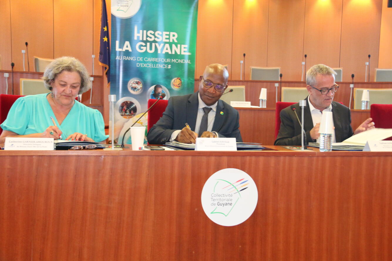 Des représentants de plusieurs territoires d’Outre-mer en visite en Guyane étaient présents dans le cadre de cette signature à l’Hôtel territorial à Cayenne :