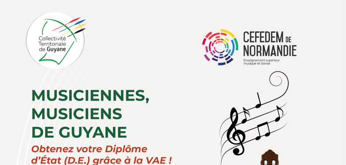 Avant le déploiement du très ambitieux programme de formation au Diplôme d’État de professeur de musique (D.E.), qui valorisera sur tout le territoire la richesse et la diversité des cultures guyanaises, la Collectivité territoriale de Guyane met en place un dispositif spécifique de Validation des Acquis de l’Expérience (VAE).