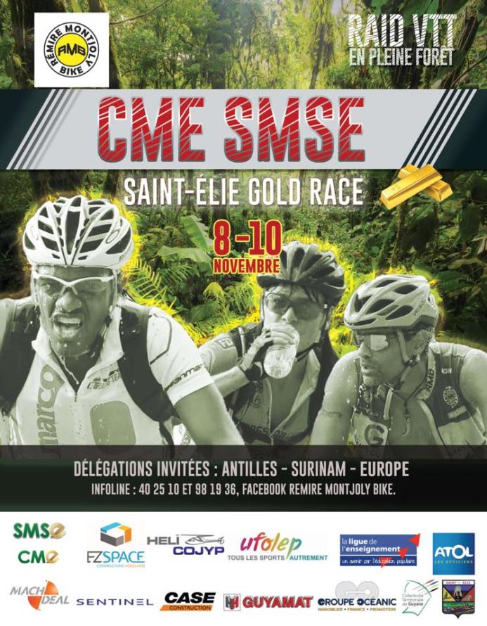 L’association Rémire-Montjoly Bike organise, en partenariat avec les sociétés minières CME et SMSE, la Collectivité Territoriale de Guyane et la municipalité de Saint-Élie, la 3e édition de la “CME SMSE St Elie Gold Race”, du 8 au 10 novembre 2019.