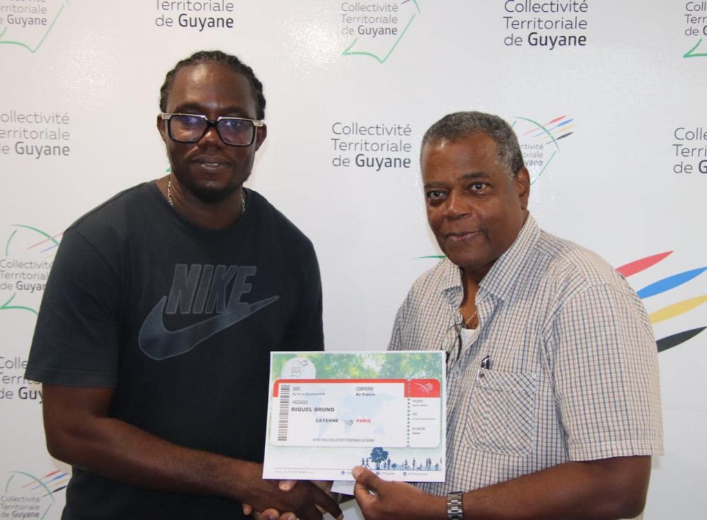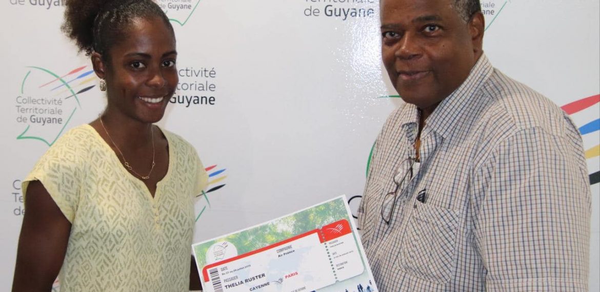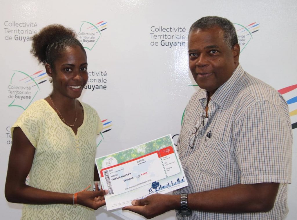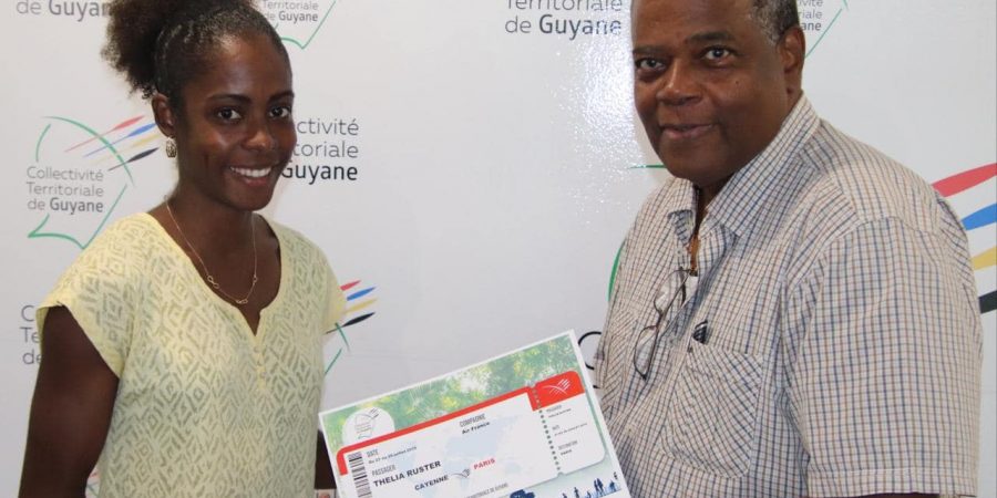 Et c’est au Vice-Président, délégué au Sport Jean-Claude Labrador, qu’il revenait de remettre à la jeune Thélia et à son entraîneur, Bruno Riquel, ce jeudi 22 juillet 2019, leurs billets d’avion Cayenne/Paris/Cayenne. La sportive guyanaise défendra les couleurs du territoire en « Heptathlon », une association de sept épreuves d’athlétisme : 100 m haies, Saut en hauteur, Lancer de poids, 200 m, Saut en longueur, Javelot, 800m.