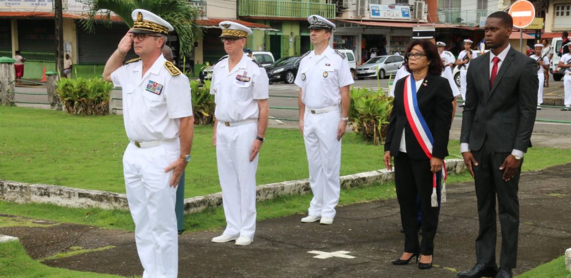 La Commémoration de la Journée Nationale du Souvenir et de Recueillement à la mémoire des victimes civiles et militaires de la Guerre d’Algérie et des Combats en Tunisie et au Maroc s’est déroulée, ce lundi 19 mars 2018, au Monument aux morts, place du Coq à Cayenne sous la présidence du Préfet de la Région- Guyane, Patrice Faure en présence du Conseiller Territorial de la Guyane, Jacquelin Marius, du Commandant Supérieur des Forces Armées de Guyane, le Général Didier Looten, de l’Adjointe au Maire de la Ville de Cayenne, Gisèle Jean-Louis, d’un ancien combattant de la Guerre d’Algérie, Hilaire Bouteselle et d’une délégation des Forces Interarmées de Guyane.