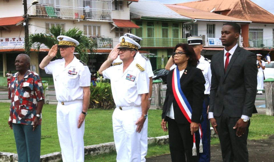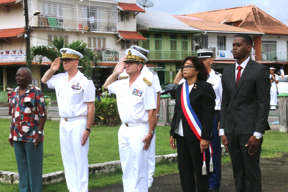 La Commémoration de la Journée Nationale du Souvenir et de Recueillement à la mémoire des victimes civiles et militaires de la Guerre d’Algérie et des Combats en Tunisie et au Maroc s’est déroulée, ce lundi 19 mars 2018, au Monument aux morts, place du Coq à Cayenne sous la présidence du Préfet de la Région- Guyane, Patrice Faure en présence du Conseiller Territorial de la Guyane, Jacquelin Marius, du Commandant Supérieur des Forces Armées de Guyane, le Général Didier Looten, de l’Adjointe au Maire de la Ville de Cayenne, Gisèle Jean-Louis, d’un ancien combattant de la Guerre d’Algérie, Hilaire Bouteselle et d’une délégation des Forces Interarmées de Guyane.
