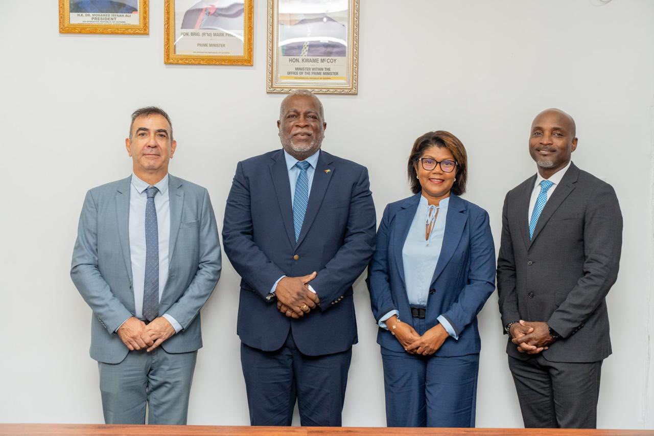 Une rencontre organisée avec Mark Phillips, Premier ministre du Guyana, a également permis de mettre en avant des projets structurants pour la connectivité régionale, notamment le câble sous-marin Lum@link, la couverture satellitaire YanaSat, et les initiatives numériques coordonnées par l’ACCYB.