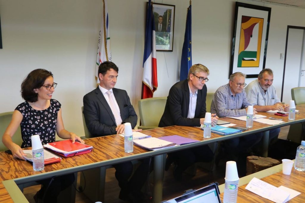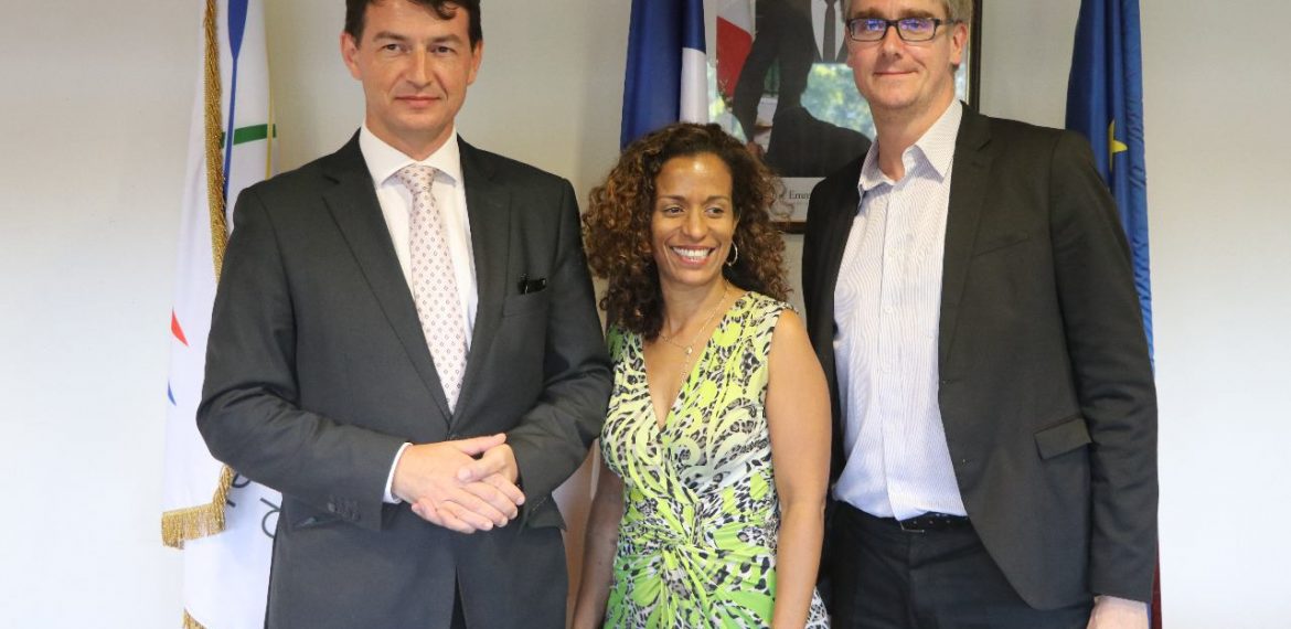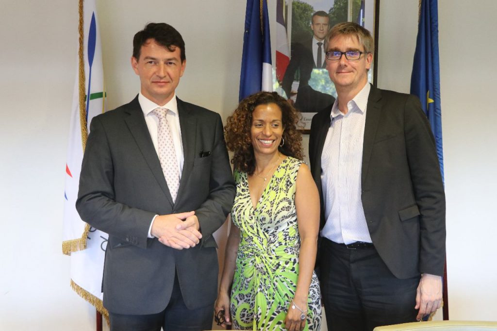 Présent sur le territoire, le délégué interministériel, Olivier NOBLECOURT accompagné par Stanislas ALFONSI, Secrétaire général adjoint de la Préfecture de la région Guyane ainsi que leurs collaborateurs respectifs, ont été reçus ce mercredi 1er août 2018, à l’hôtel territorial par la Vice-Présidente de la CTG Audrey MARIE et les directeurs des services rattachés à sa délégation, la petite enfance et la jeunesse.