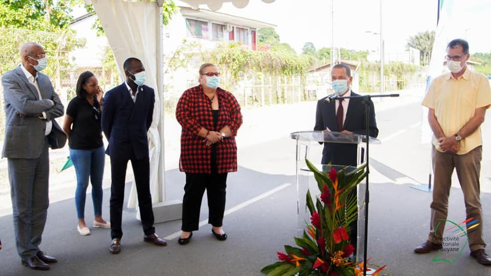 Ce jeudi 3 mars 2020, Rodolphe Alexandre, président de la Collectivité Territoriale de Guyane (CTG), a réceptionné les travaux entrepris pour la remise aux normes de la RD11 bis, dite « Route du Port » à Saint-Laurent-du-Maroni, aux côtés de Sophie Charles, maire de Saint-Laurent du Maroni et présidente de la CCOG, Georges Patient, sénateur et vice-président du Sénat, Lénaïck Adam, député de Guyane, les conseillers territoriaux Catherine Léo, Denis Galimot, Anne-Marie Read, Jehan-Olivier Maignien et Crépin Kezza et Christian Morel, directeur adjoint à la Direction Générale des Territoires et de la Mer (DGTM) en charge de l’antenne de l’Ouest guyanais.