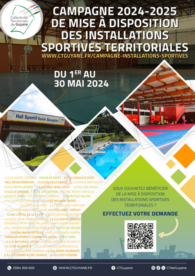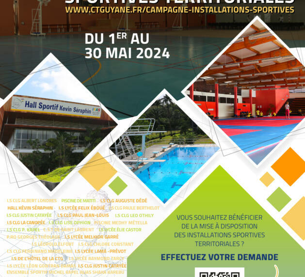 Aussi, afin d’optimiser le traitement des demandes mais également la gestion des équipements sportifs, les associations sportives sont invitées à se rendre sur le site de la CTG pour effectuer leurs demandes à l’adresse : www.ctguyane.fr/campagne-installations-sportives .