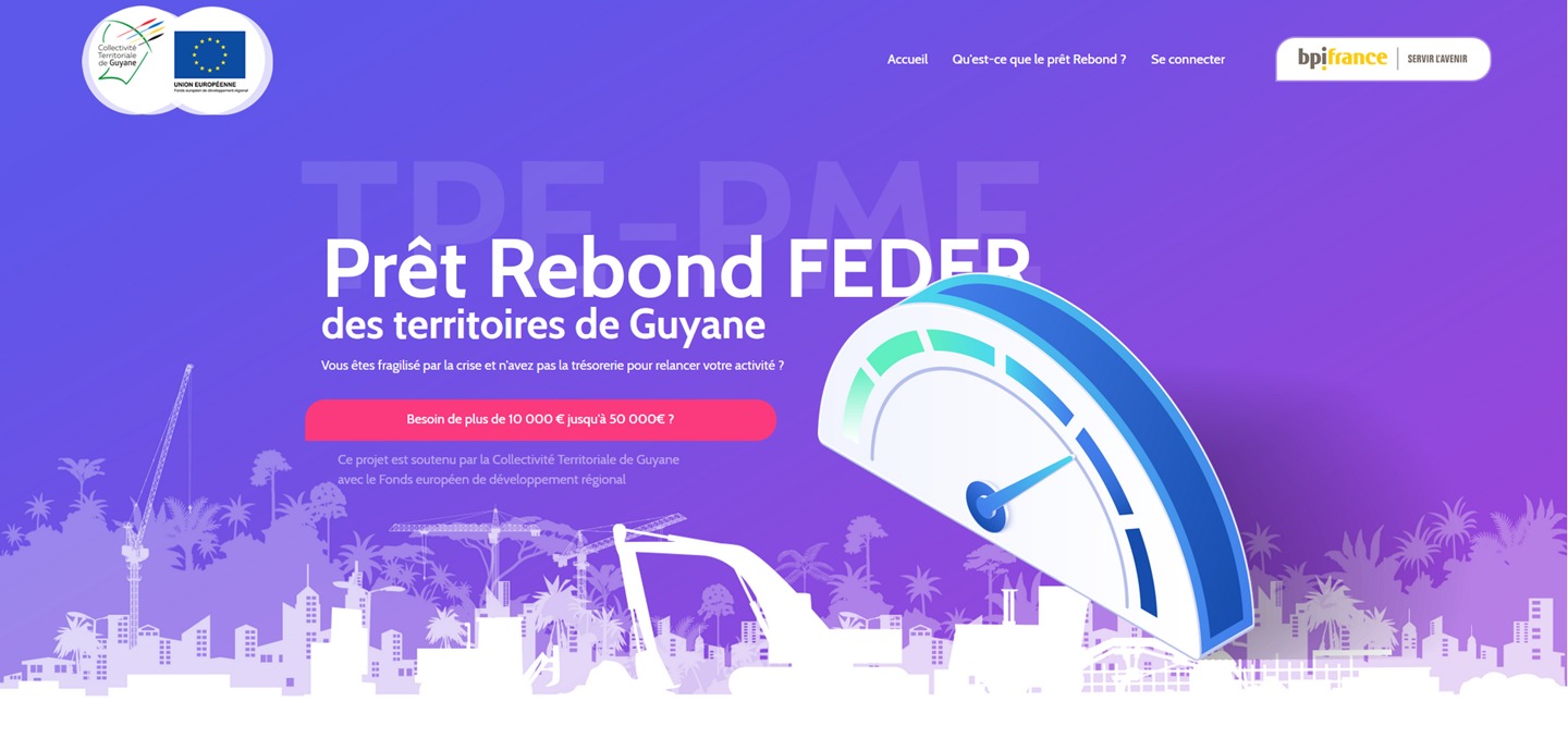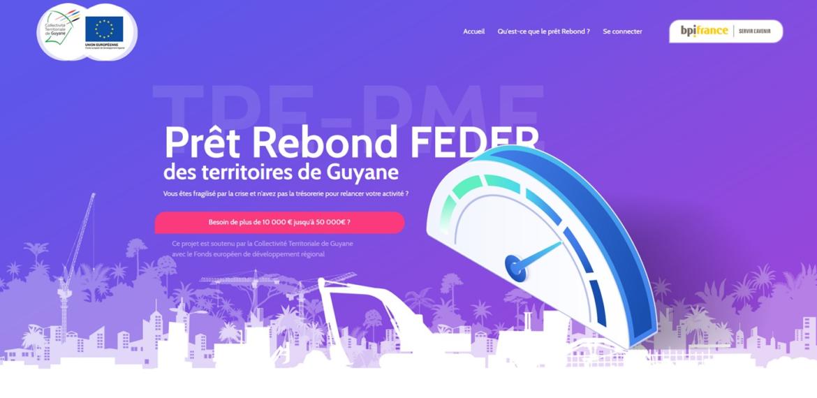 Au regard du contexte de crise sanitaire actuel sans précédent impactant les entreprises du territoire, la Collectivité Territoriale de Guyane a décidé, en partenariat avec BPIfrance, du lancement d’un tout nouveau dispositif, géré par BPIfrance : le « prêt rebond FEDER des territoires de Guyane ».