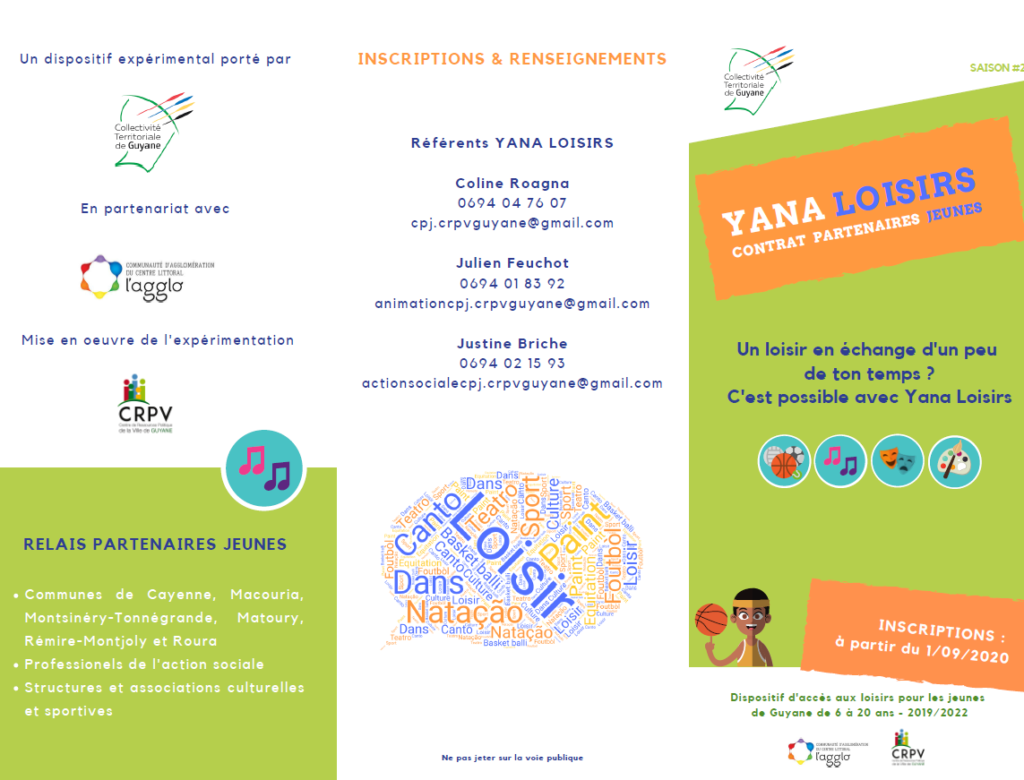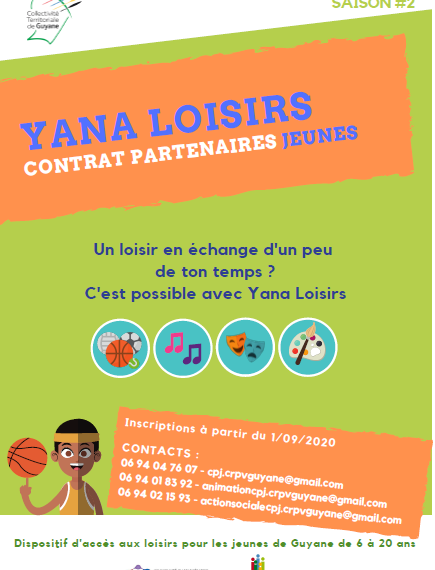 La Collectivité Territoriale de Guyane (CTG) poursuit le déploiement du dispositif Yana Loisirs – Contrat partenaires Jeunes, à destination de 200 jeunes, avec le partenariat de la Communauté d’Agglomération du Centre Littoral et du Centre de Ressources Politiques de la Ville de Guyane (CRPV).